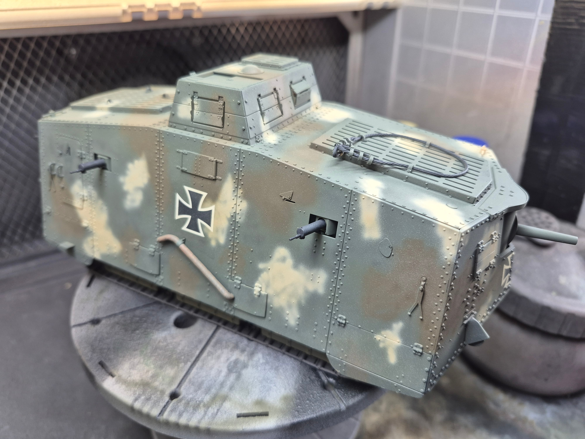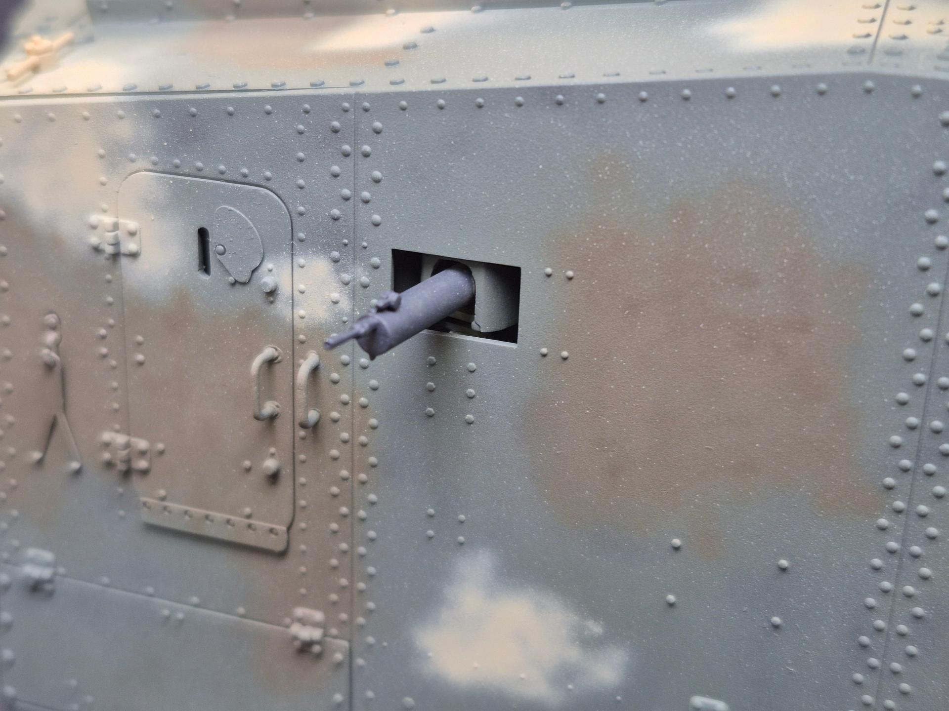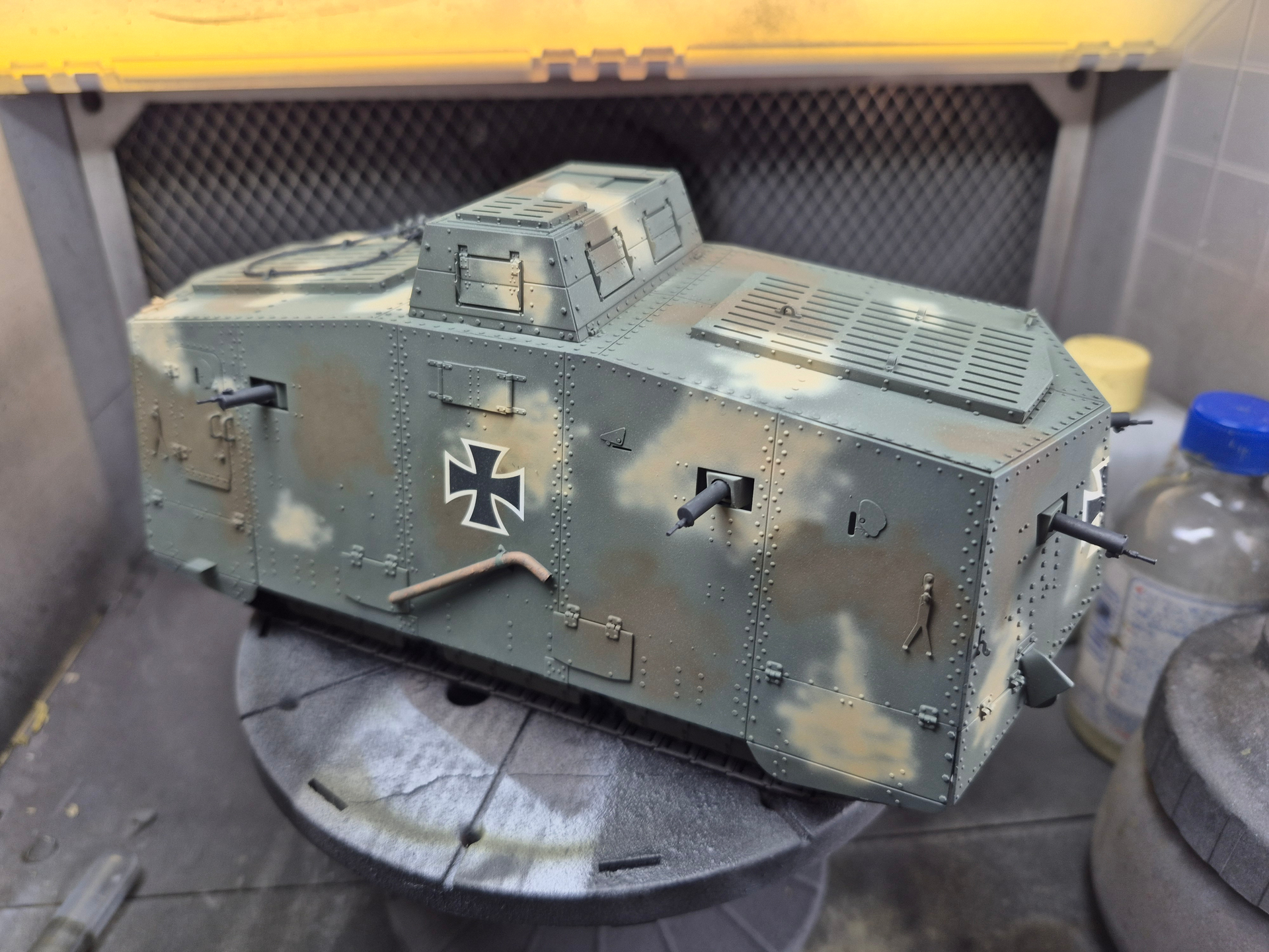 Sprayed a bit of think tamiya khaki and buff on the kit mixed with a bit of clear.