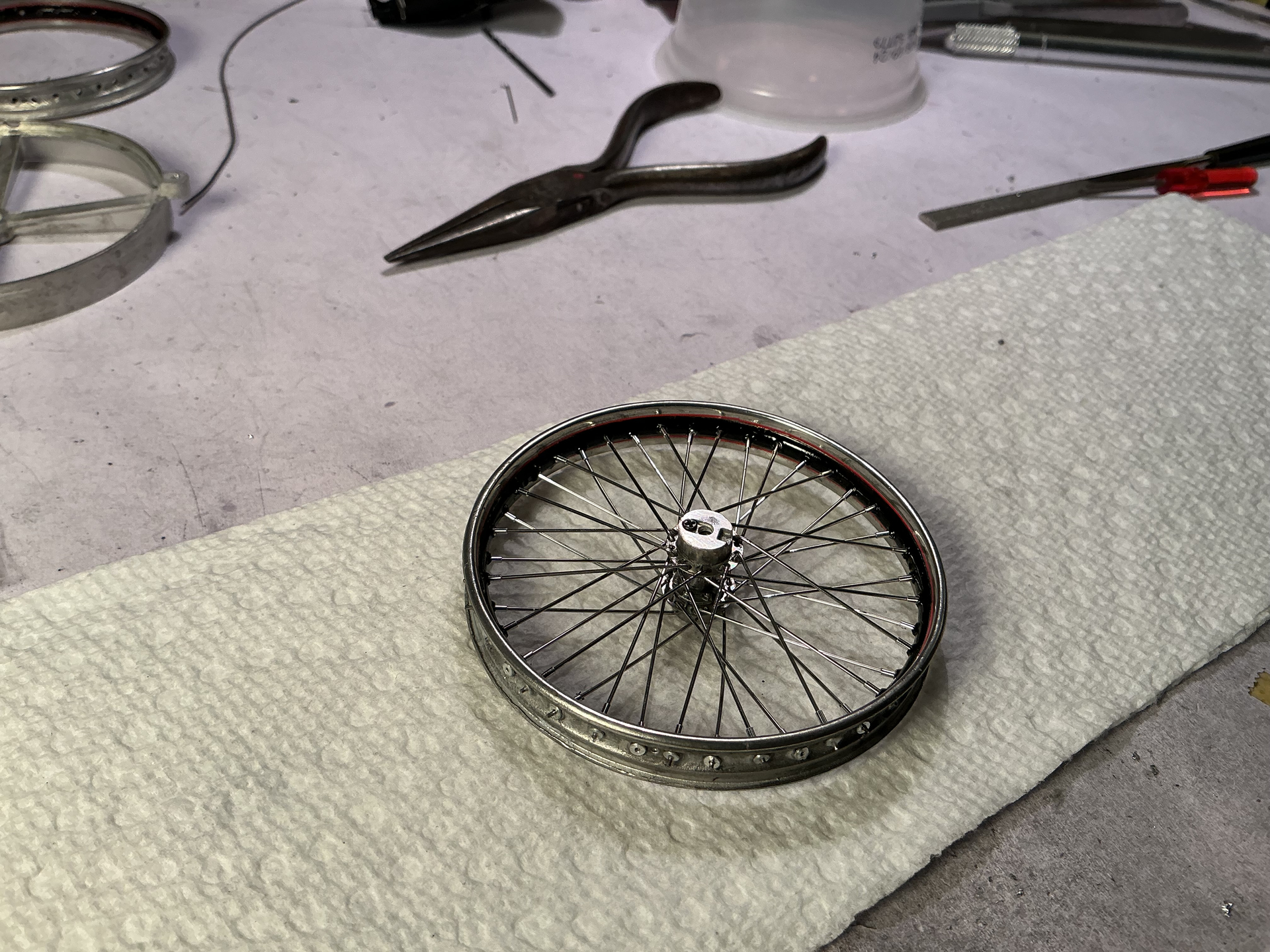 Rear wheel will be built in the same manner.