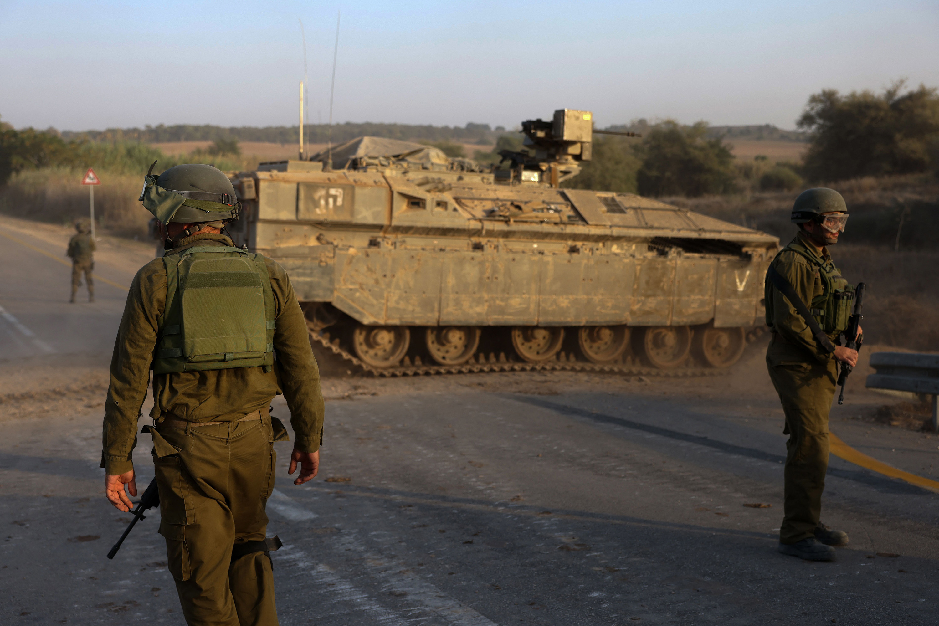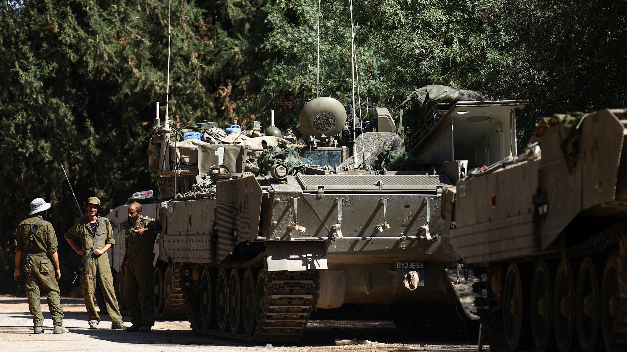 Looks like two Rochev (M109) howitzers with a Mugaf (M577) Command vehicle, an Alfa (M548) ammo tender and a Chata’p (M-113) repair vehicle.