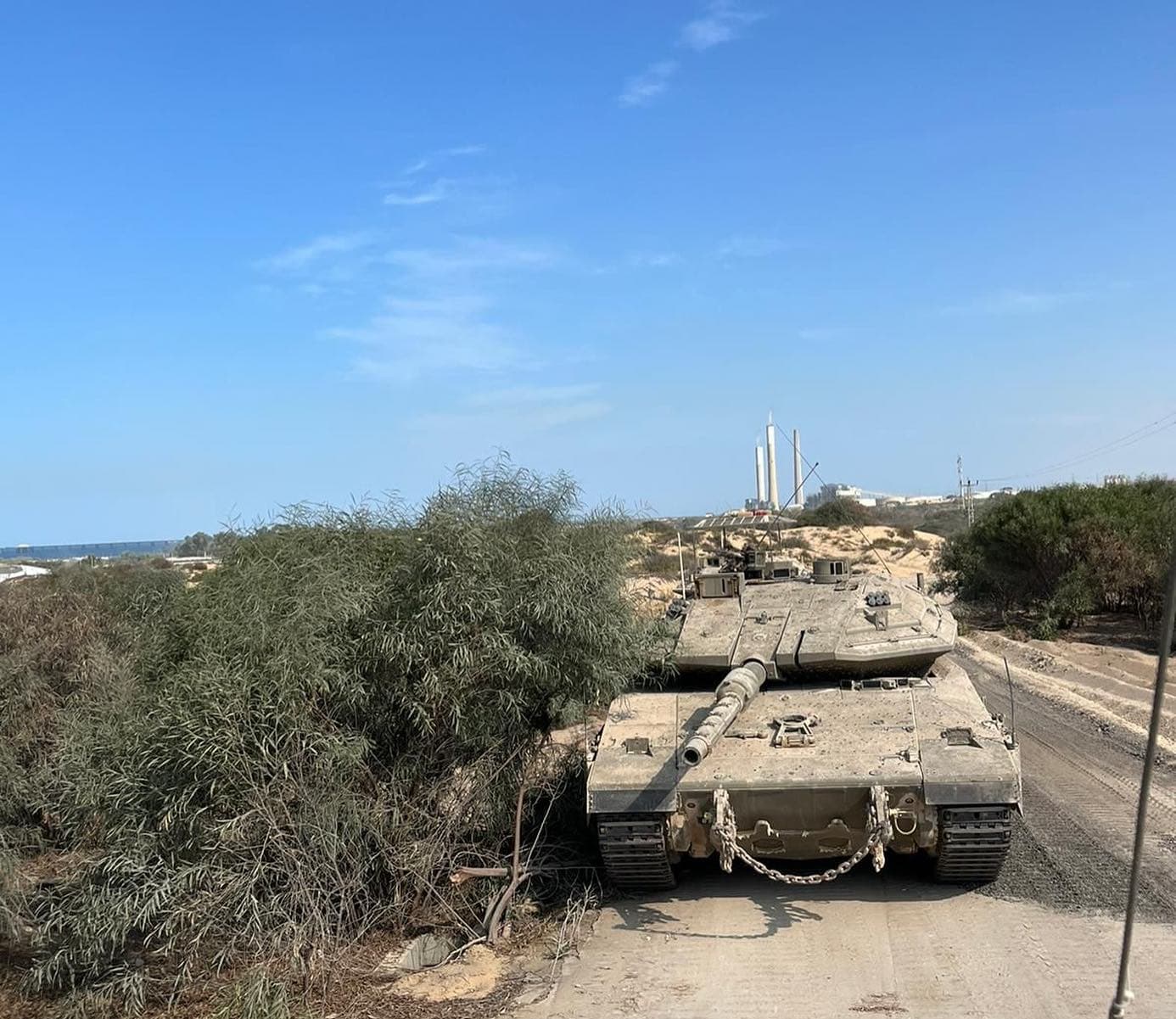 Interesting to notice that the usual white stripe on top of the gun barrel of the Merkavas is not present.