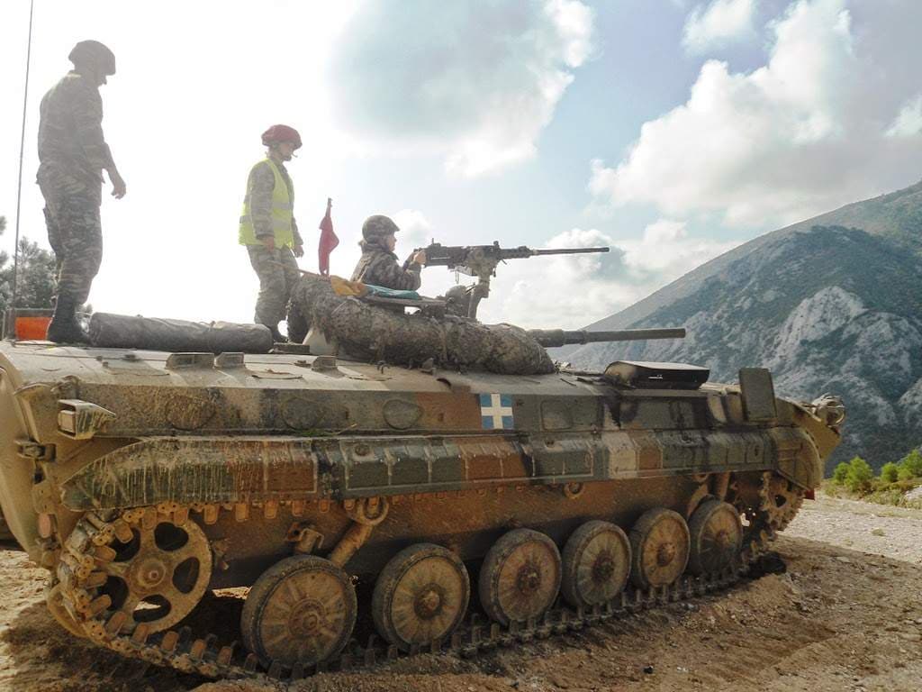 here’s a nice image of an Ex- NVA/Ex-Bunderwehr BMP-1A1 Ost in Hellenic service, with the turret mounted M2 BMG.