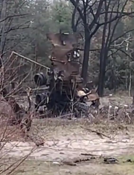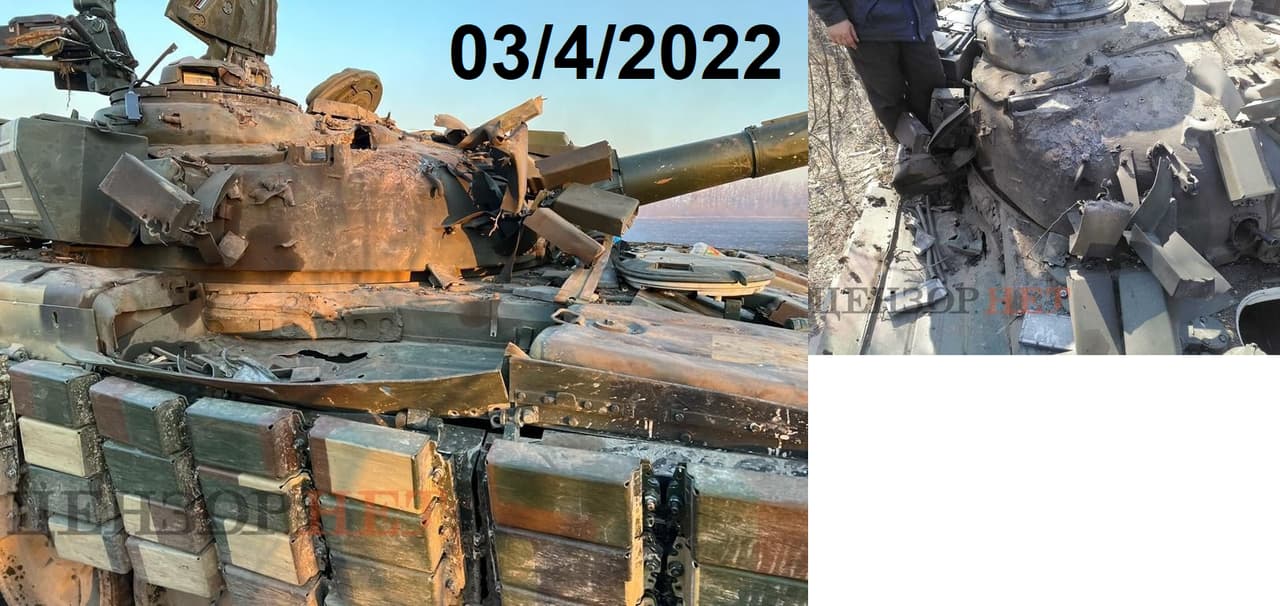 Here’s an interesting one to ponder. A Ukrainian T-72 Ural that has some upgrades such as the Kontakt 1 ERA, and anti radiation cladding. Looks like it took a hit on the right side rangefinder optical port, which also damaged a fender fuel cell, but nothing beyond repair.