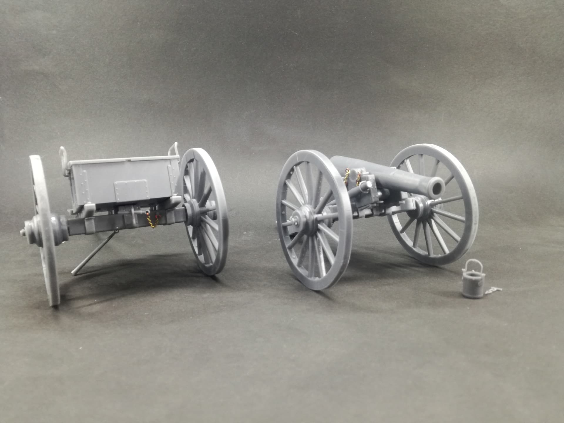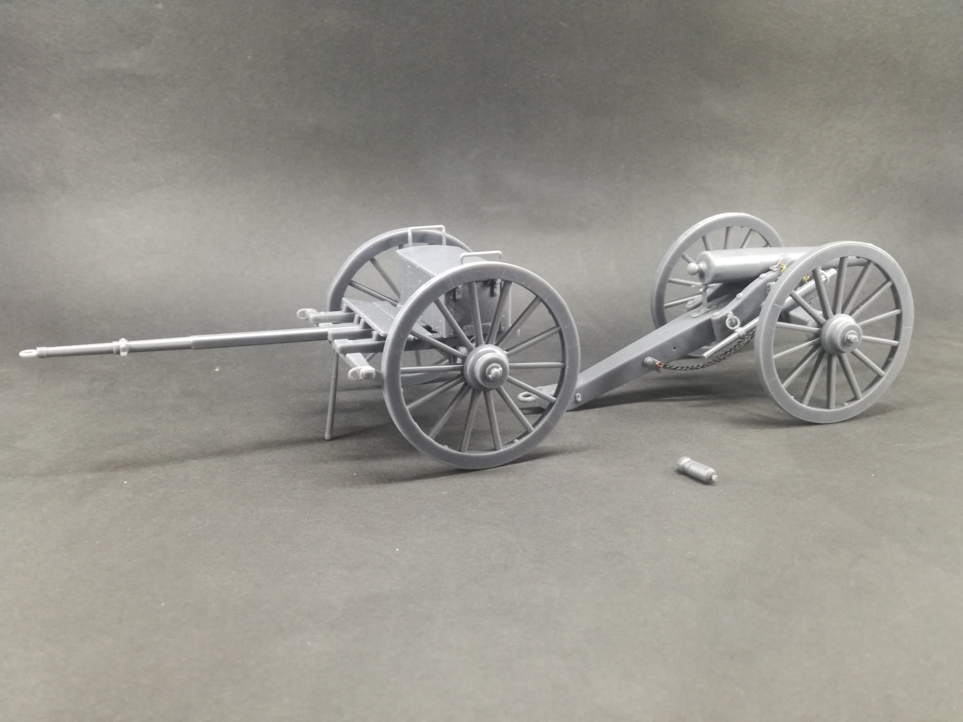 Test print of the Napoleon 12pdr, to see the the fit. I left some of the small details for the painting process. The barrel height is adjustable with the screw. Two types of shells-canister and solid shot.