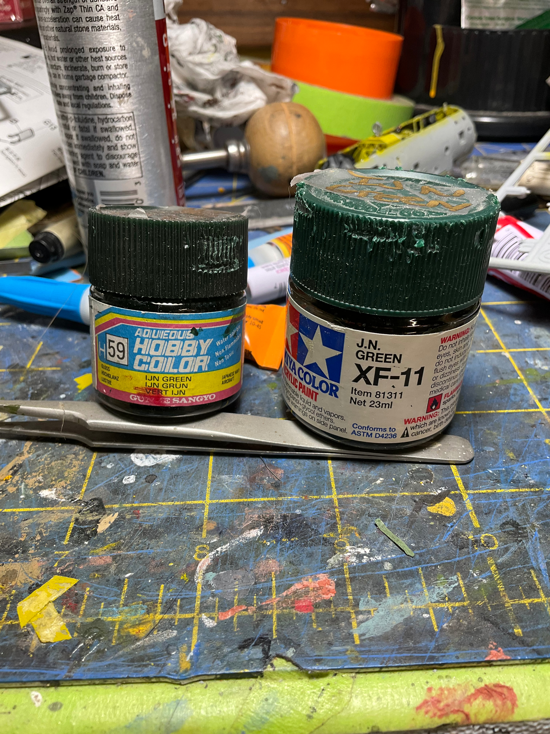 I’m building a nakajima b6n Jill for the torpedoes away campaign. Can anyone tell me if either of these two paints can be used as the factory Nakajima green? Are they too light, would I be able to mix my own using one of them?