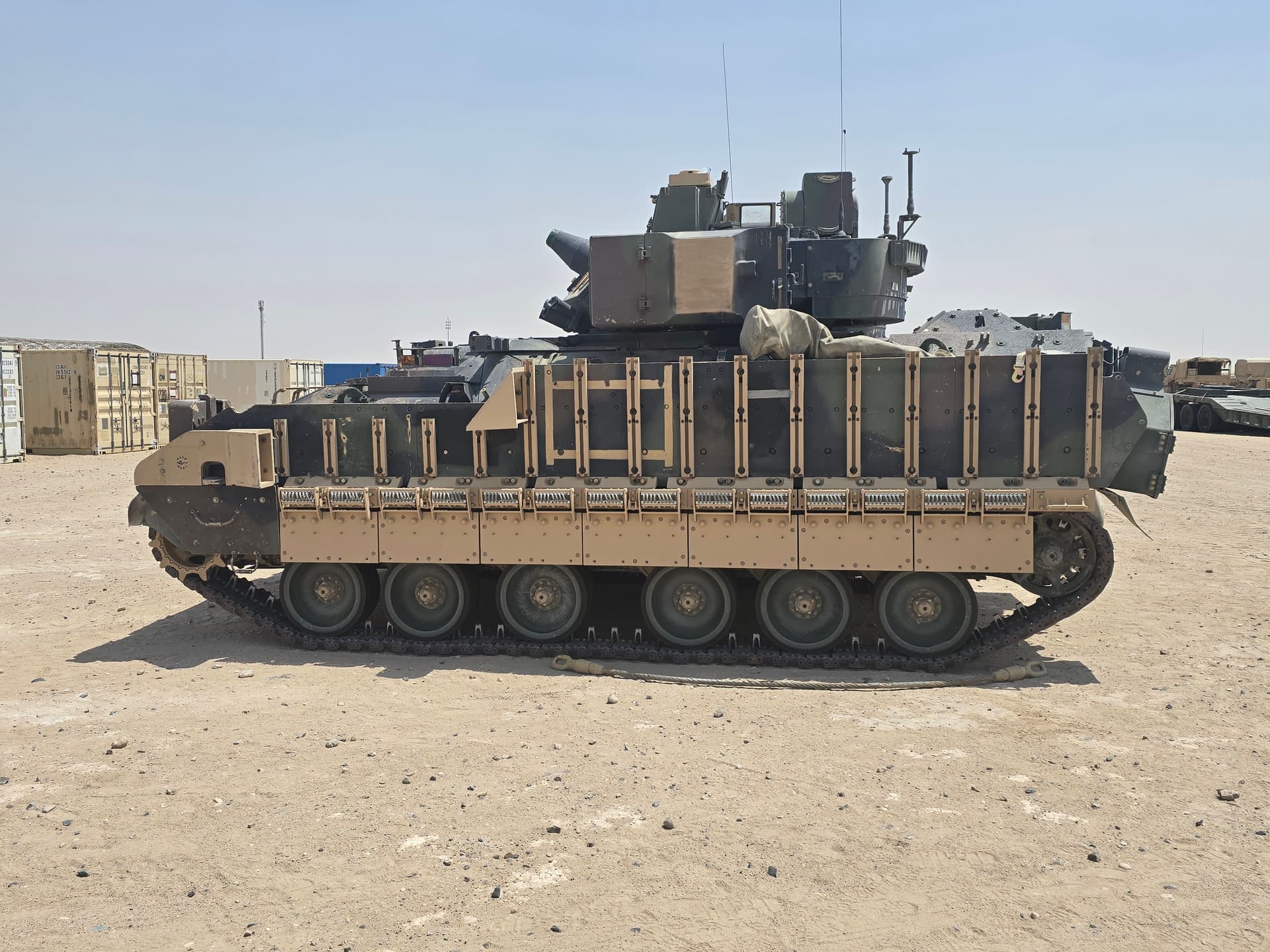 These new brads showed up in the last 6 months to replace the TPE fleet which were all tan and A2s IIRC. These are woodland camouflage as you can see. The Troop of bronze green Brads are elsewhere at the moment.