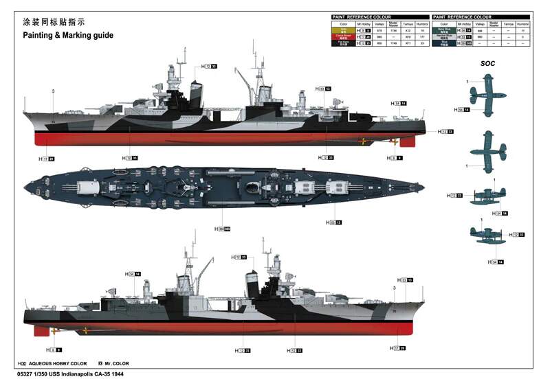 Regarding the Indianapolis, sanding the deck to indicate planking could accidentally erase molded-on detail, and the slightest amount of wavering during sanding will make the planking all wiggly - not good! If you want to scribe lines I would suggest a straight edge and sharp blade. Even better is scribed wooden decks such as from Artwox. Also keep in mind that, depending on era, the deck (wood) could be unpainted, or painted dark blue: