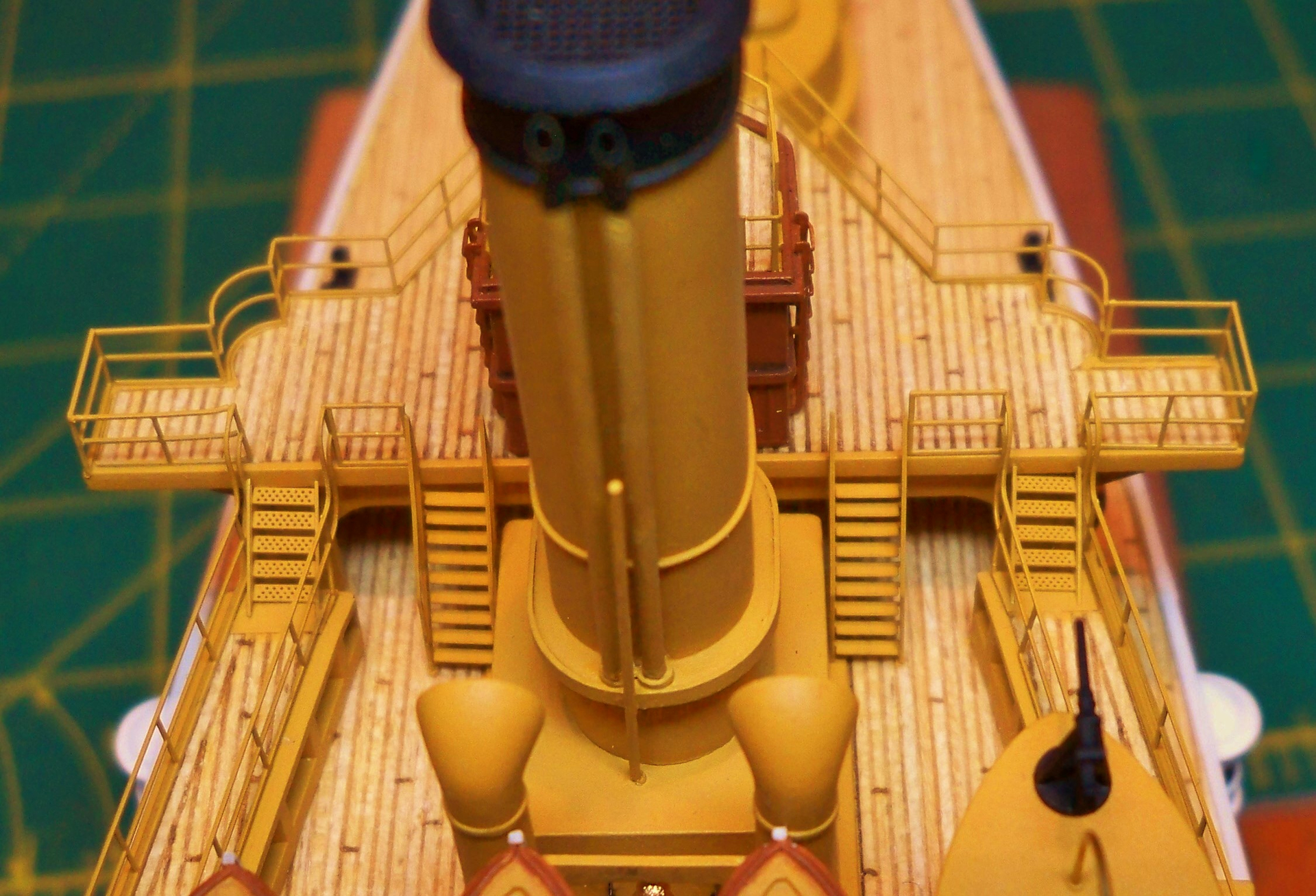 This 1/700 scale battleship’s planks were simply painted and, while not as striking as real wood aftermarket decks, look more like what an observer would actually see looking at the original ship at normal viewing distances.
