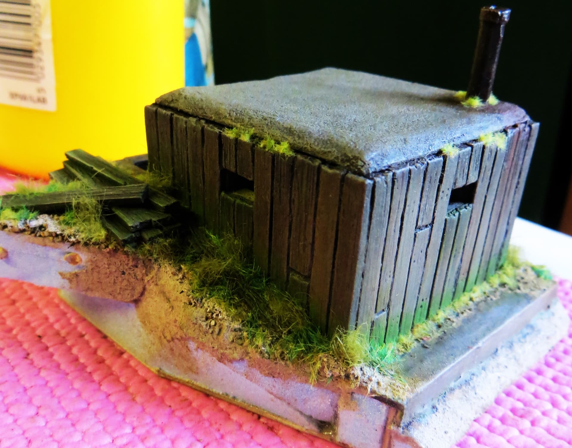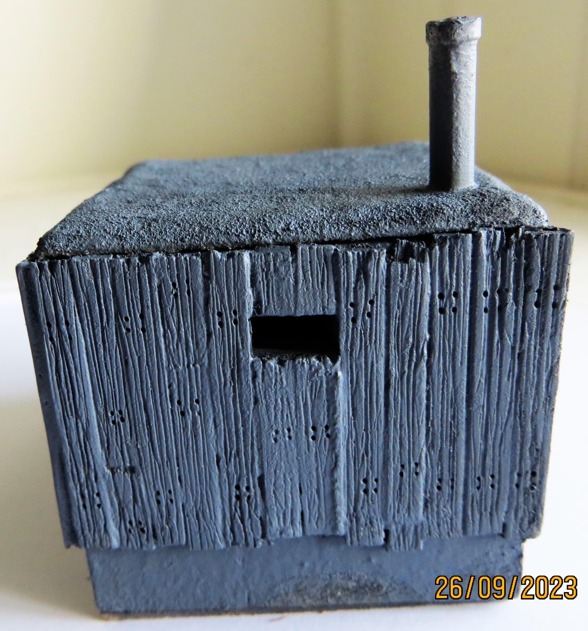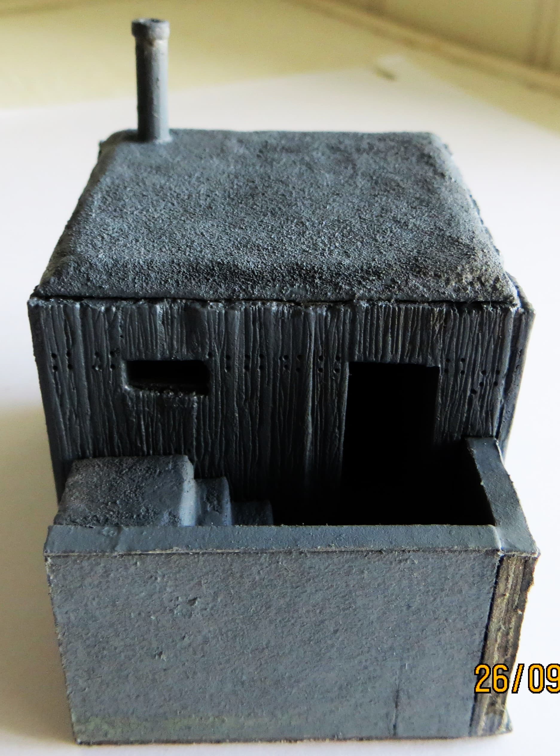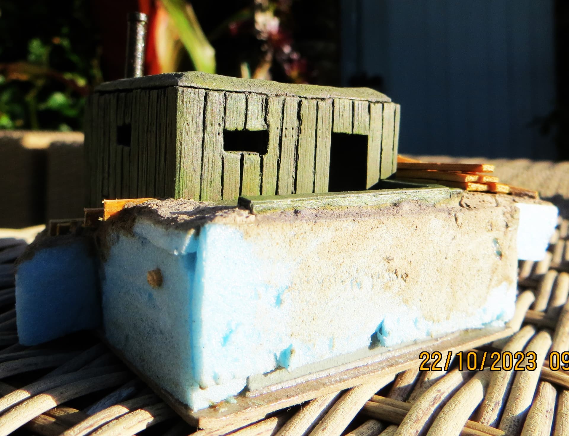 So cobbled together a smaller Type 26 pillbox. Found an image of one alongside a railway line camouflaged as a Platelayer’s Hut, so decided to have a go at that.