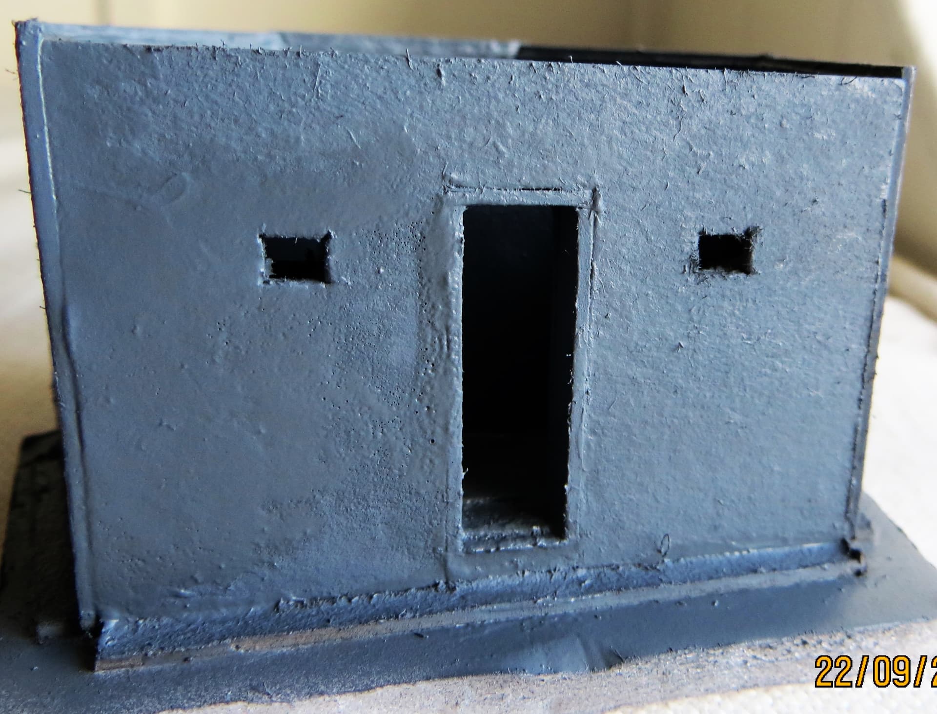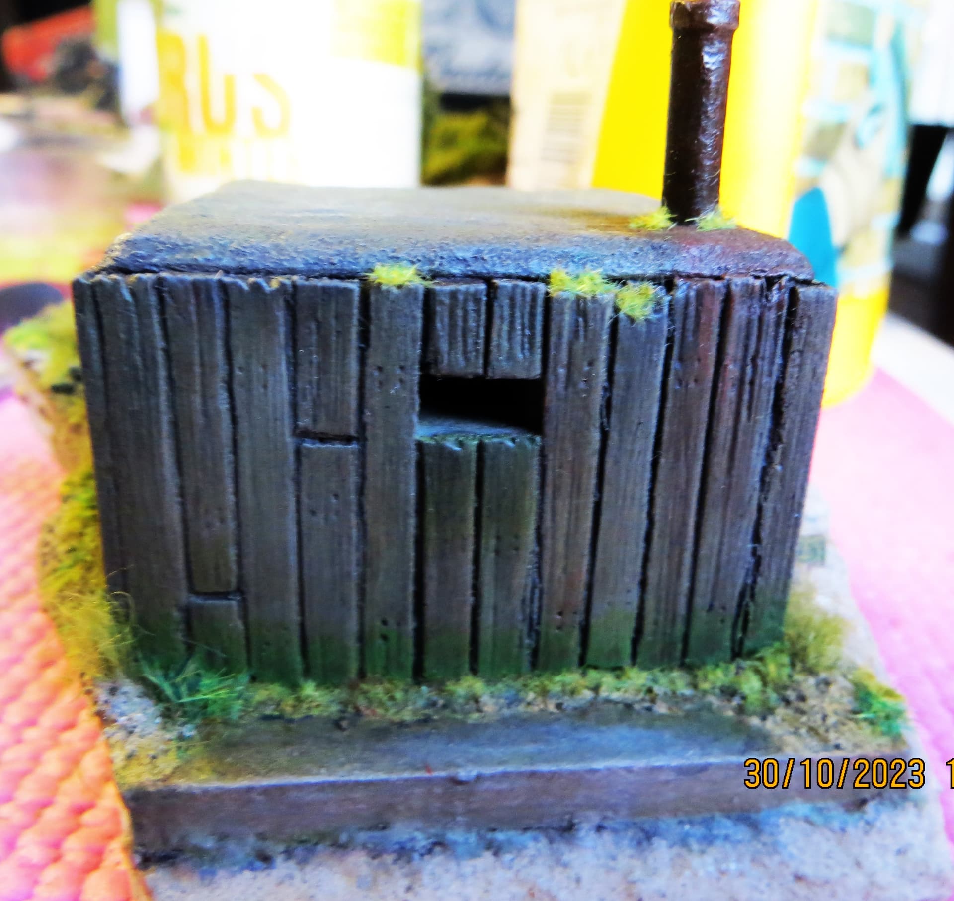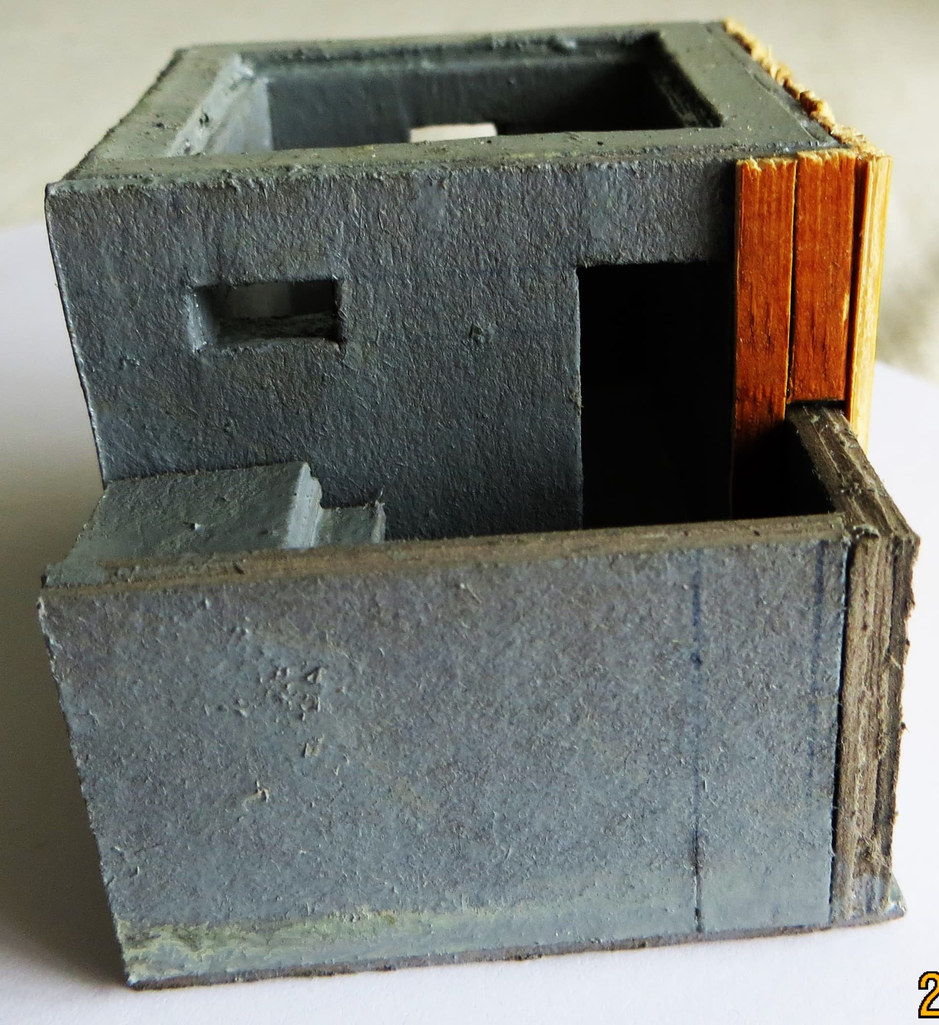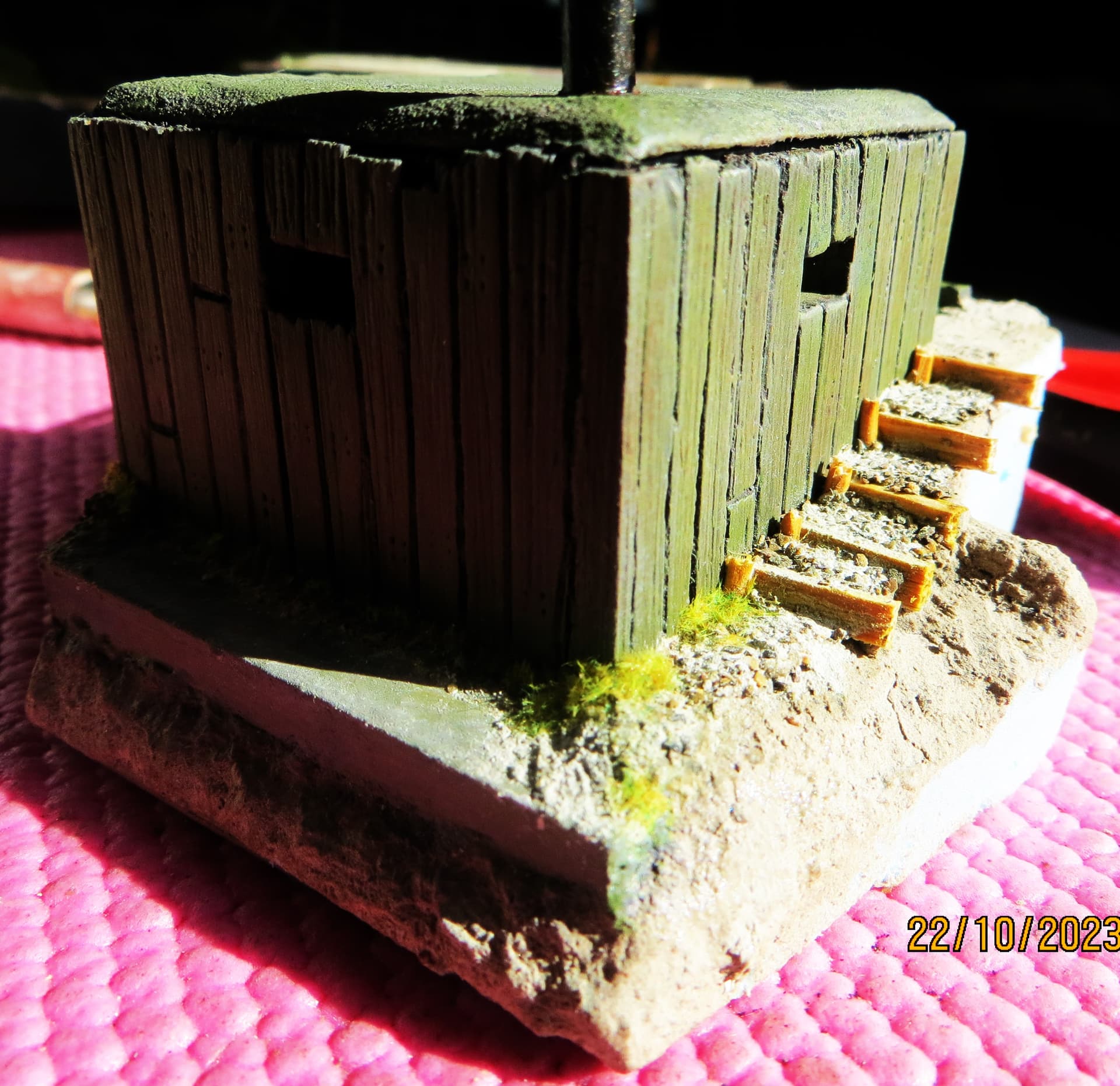 So cobbled together a smaller Type 26 pillbox. Found an image of one alongside a railway line camouflaged as a Platelayer’s Hut, so decided to have a go at that.
