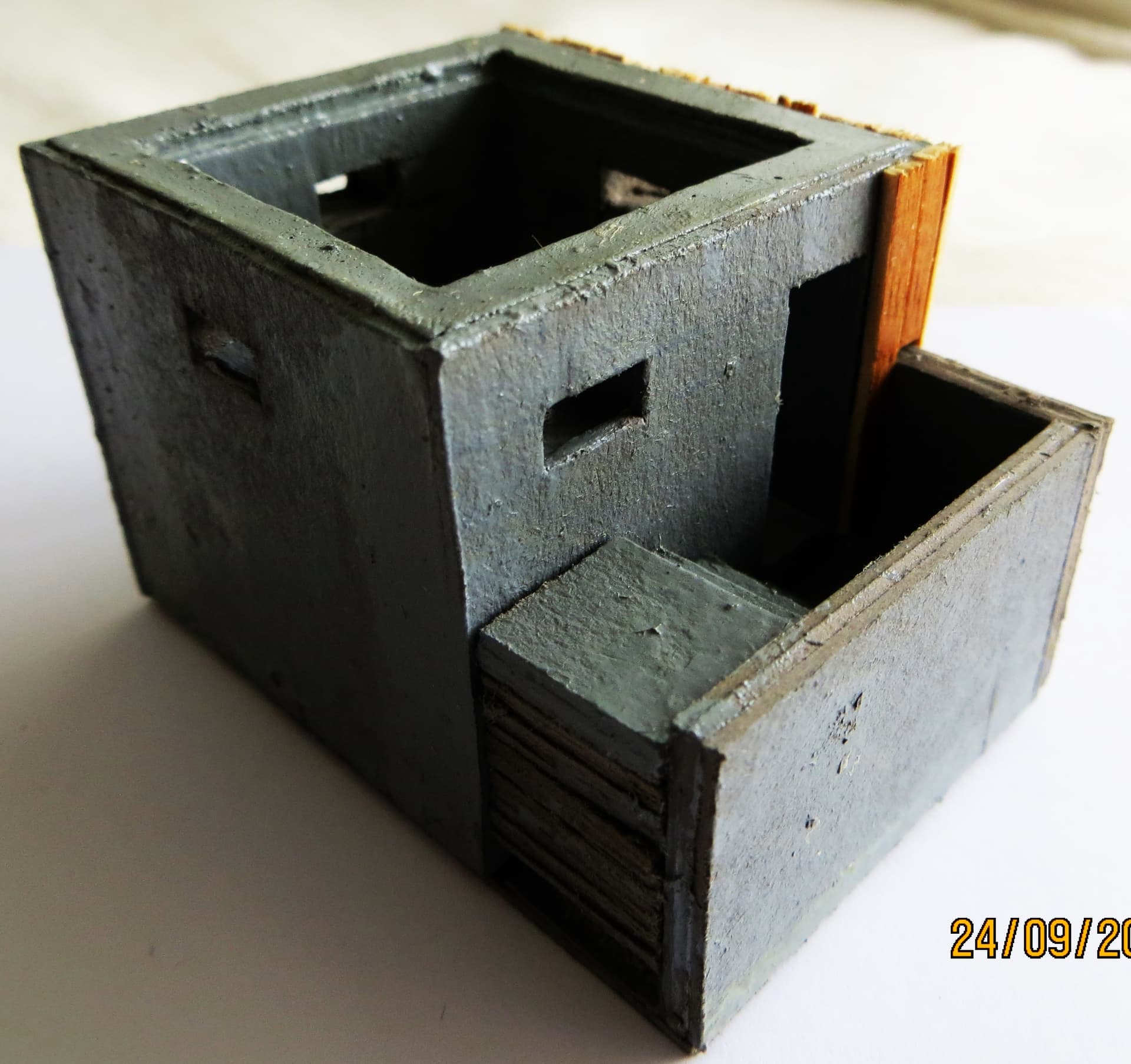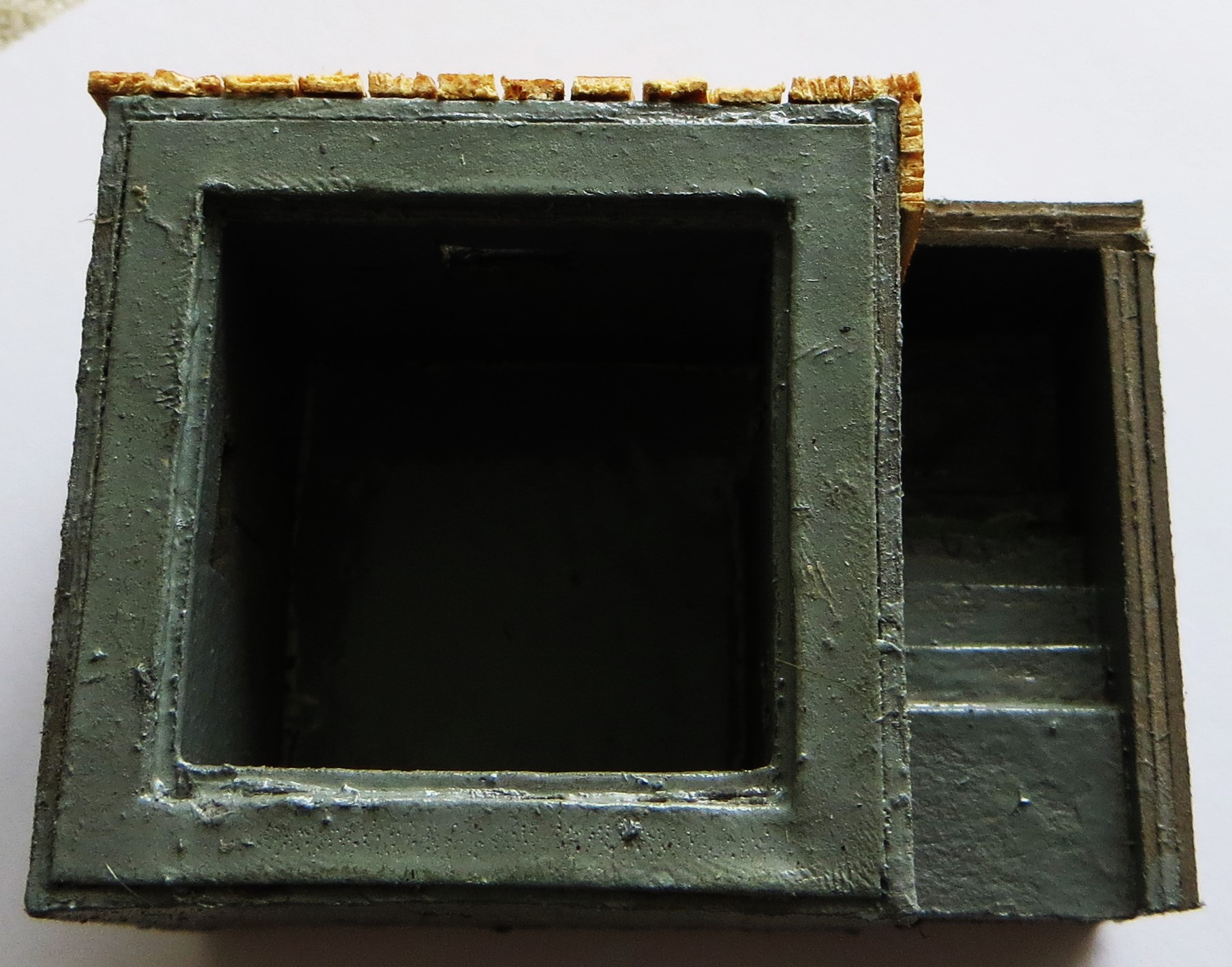 So today I roughed out a basic interior for the pillbox, it’ll never be seen once the roof is glued in place, but it’s there,