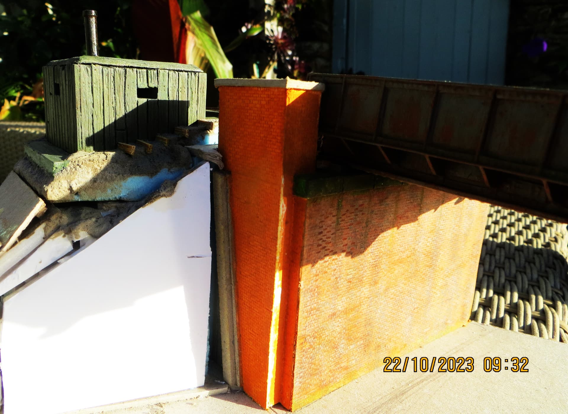 Some small progress, a tad more work on the Type 26 pillbox. Like the bridge and rail track, I’m treating it as a separate element at this stage so I can work on it with relative ease.