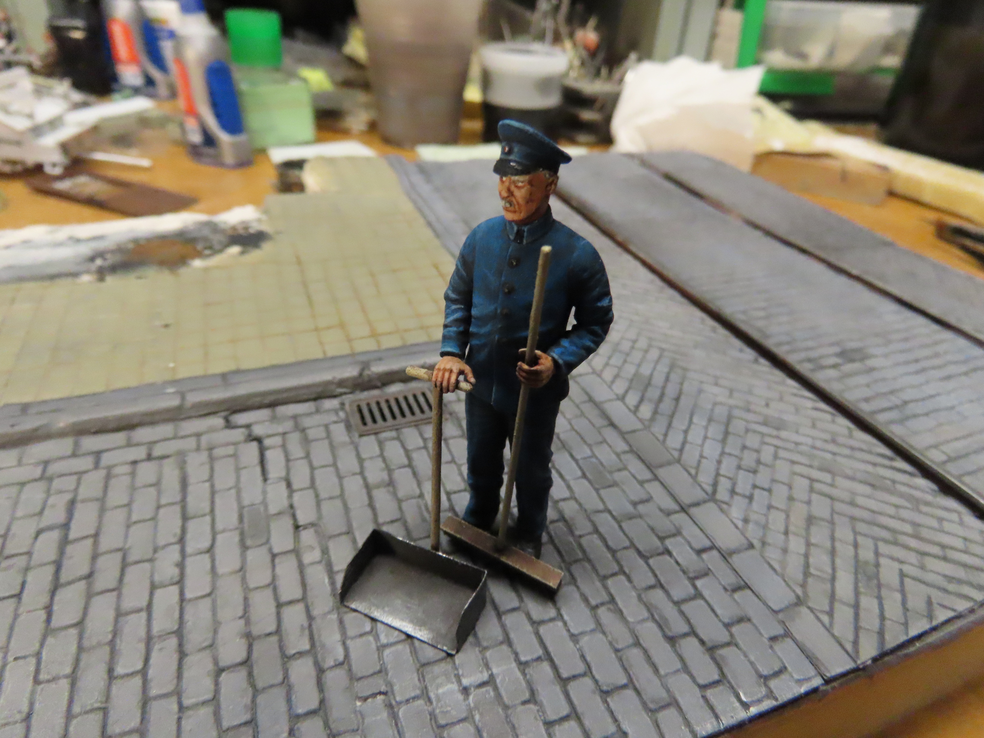 Anyone that knows Germany knows about the windows thing. Here is a shopkeepers’ wife gettin down to it. Slightly modified Preiser figure.