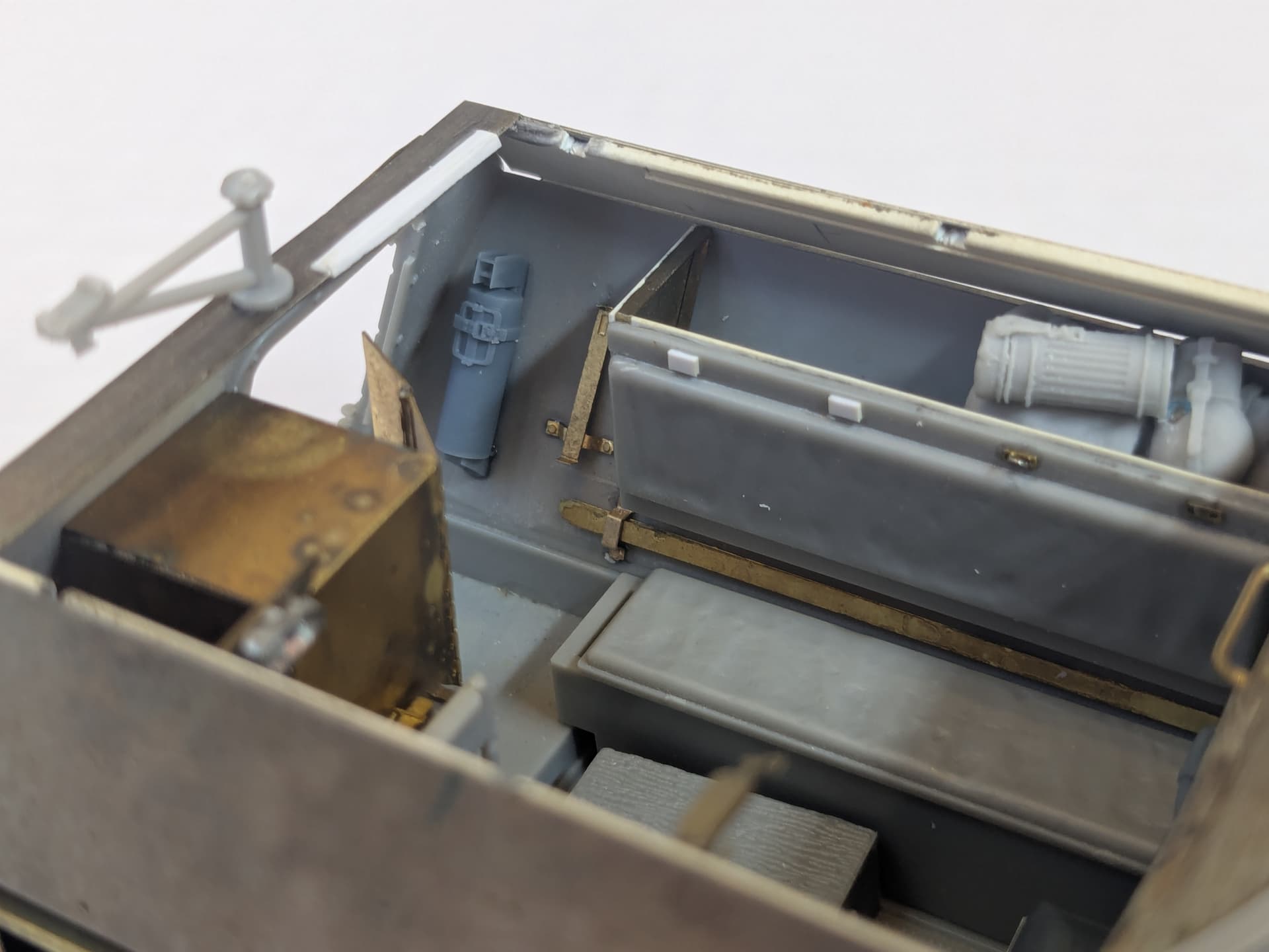From a practical perspective, it is small but also crowded and very exposed. It is also only possible to add the detail before you join the upper and lower halves together. This leads to problems further down the line (especially if, like me, you opted for the Aber photoetch upper body).