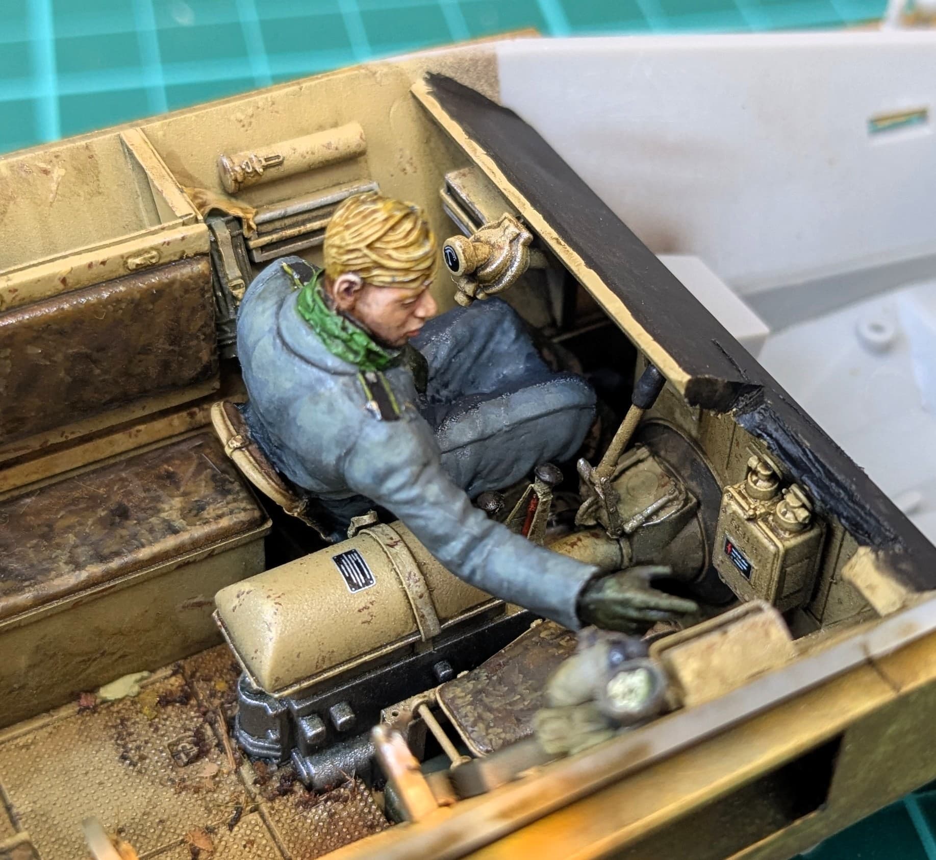 Beautiful looking interior Tim- the patina of the metal and the general dirt, grime and wear & tear you have done in there makes for an authentic look. Plus the fig makes you appreciate just how cramped it is.