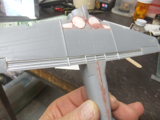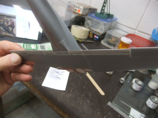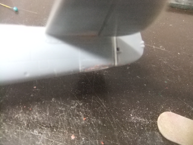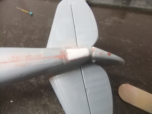 (DEC 17th ) …Today , I sanded the work done last time ,and add more putty , add the missing piece to the top of the rudder and rudder , also I continue working on the tail structure of the HARVARD version !