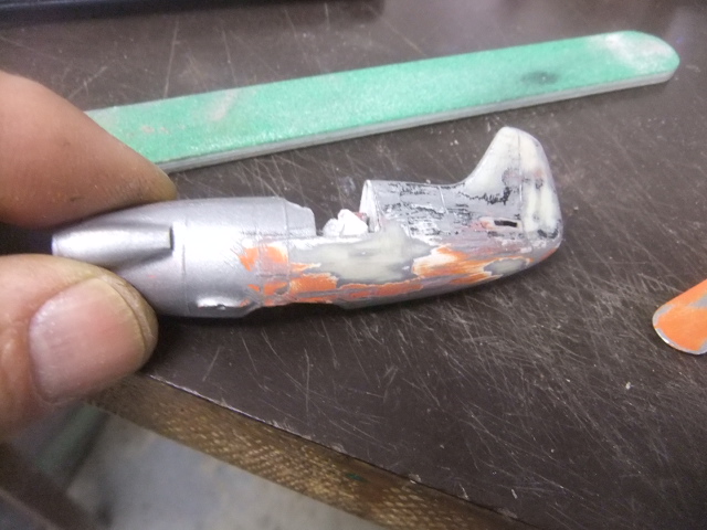 (APR 11th) …Today ,I cover the front fuselage , done the head restingh panel , apply putty on the fuselage seem !!