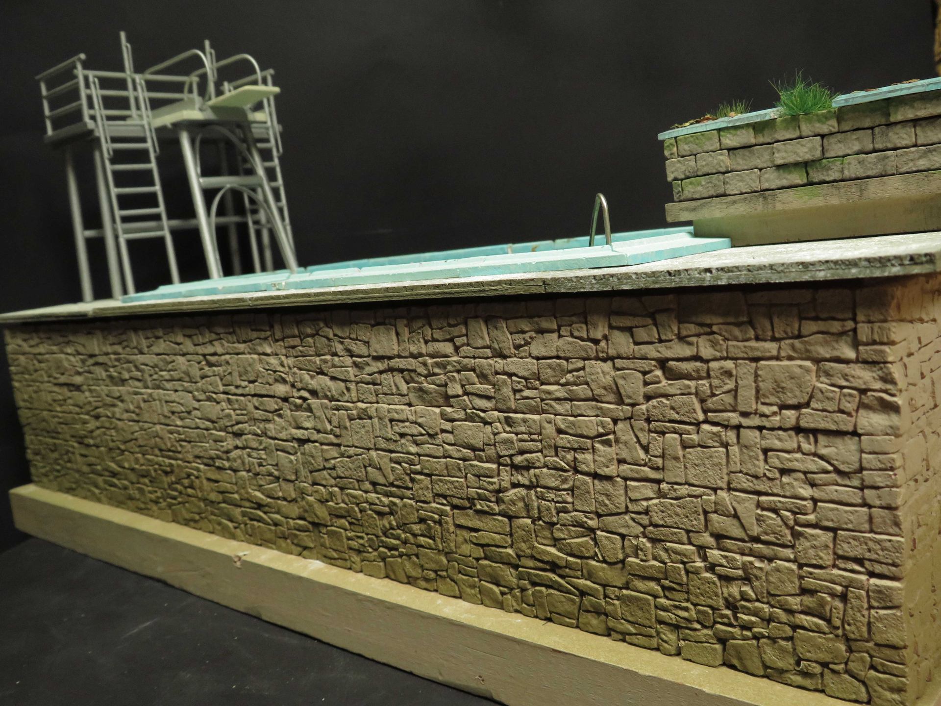 Ok , the pool/hottub is basically done . Now I’ve got to make boardwalking and pilings . The boardwalking will be flush with the concrete around the pool area .