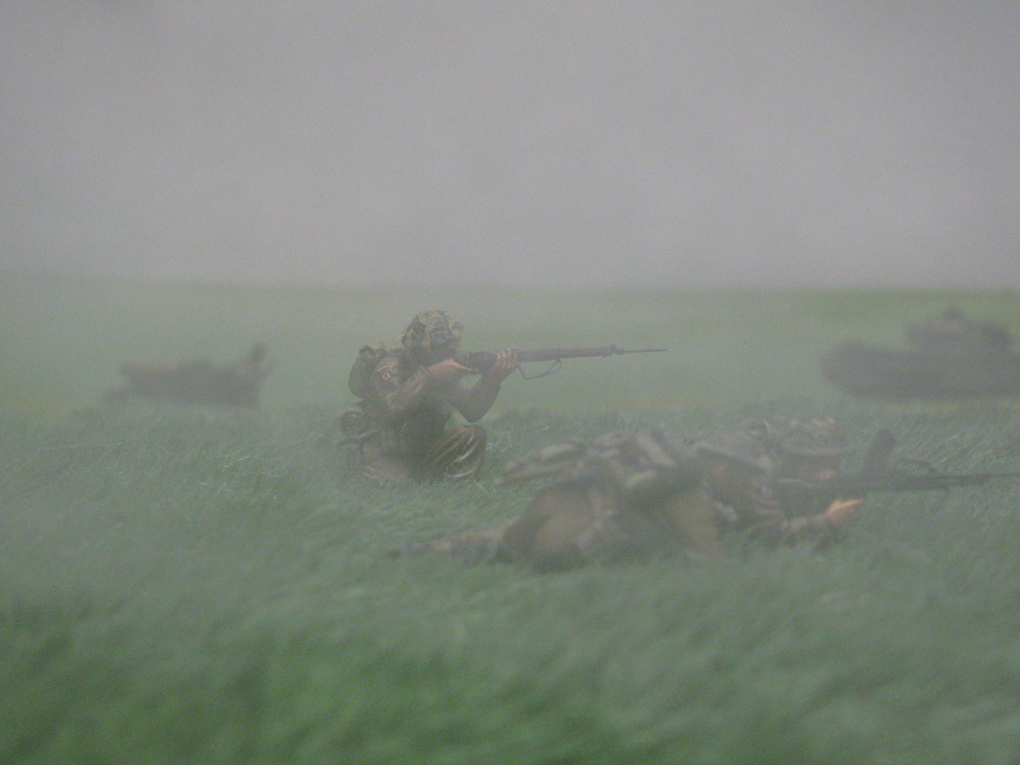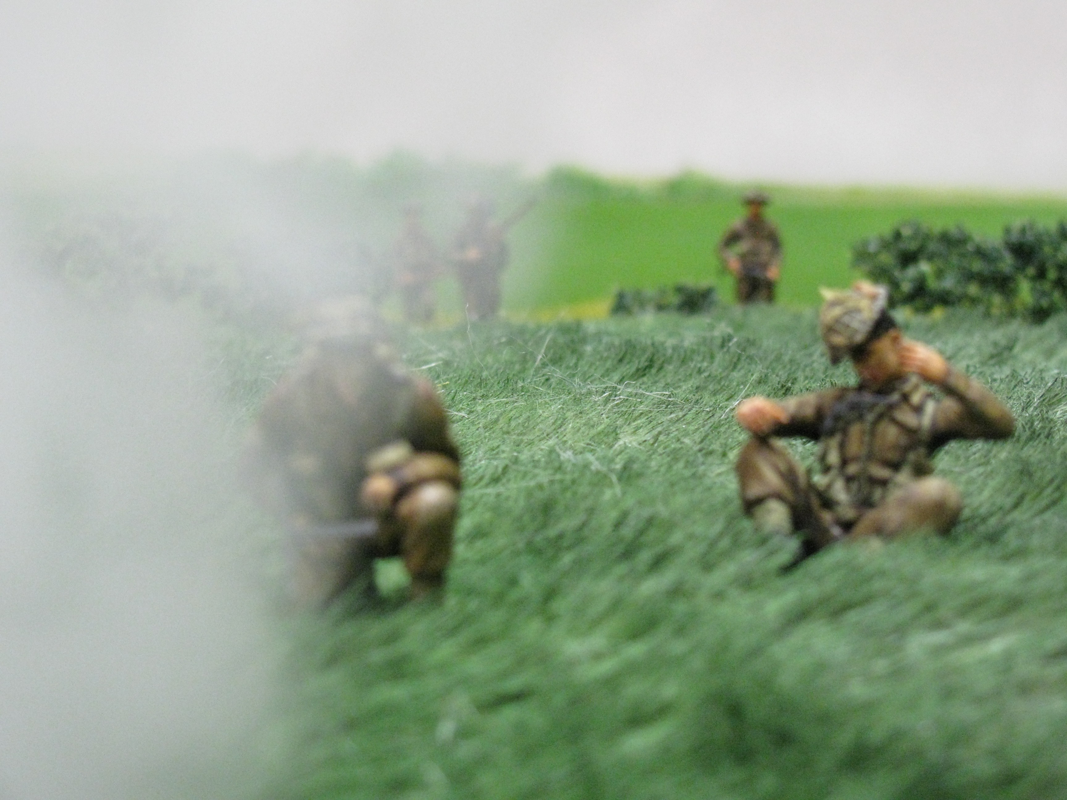 keep the hedge to the left covered. All units,have a mind for our infantry in the tall grass.The HJ has begun to fight back after realizing the barrage had passed. Machine gun,rifle and mortars that have survived start to take their deadly harvest.