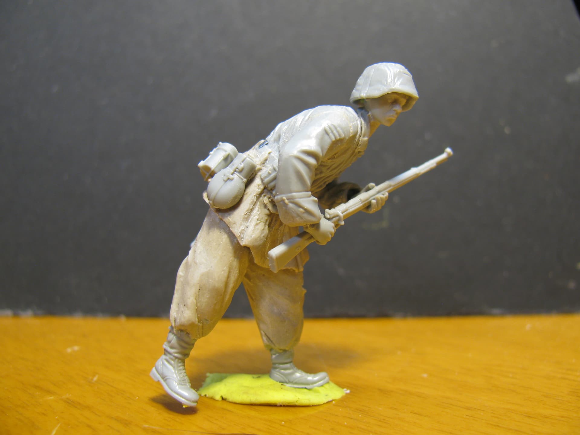 The Youthful Hornet head goes a long way in the subtraction of years. I began building up the trousers. Most scale figs don’t show enough volume in the trousers.