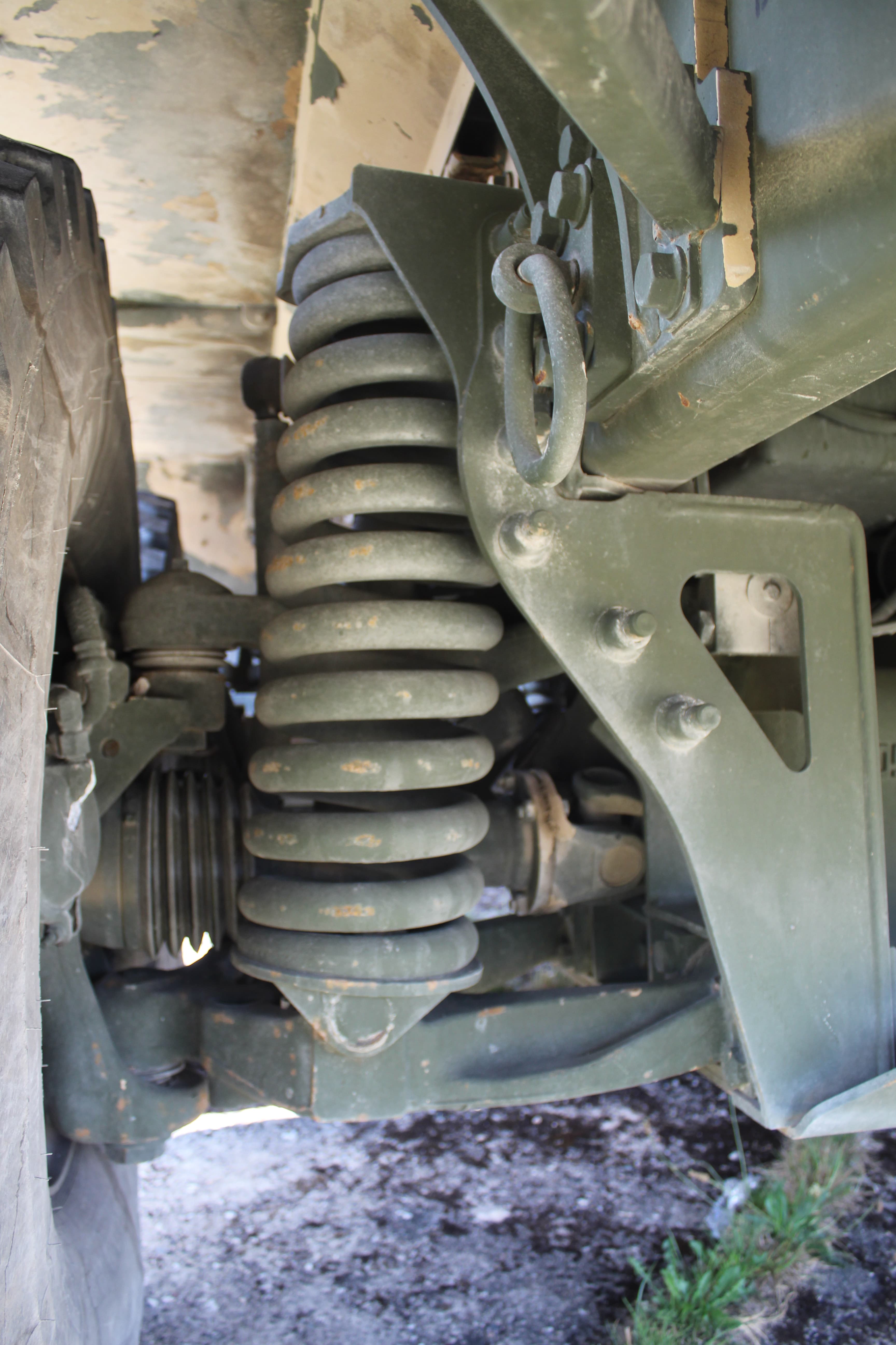 On the newer M1074A1, it may be the same, not sure. The M1070A1 uses TAK4 suspension units up front and the same spring and bar suspension for the rear two axles. I’m not sure, but I think the middle one may be TAK 4 as well.