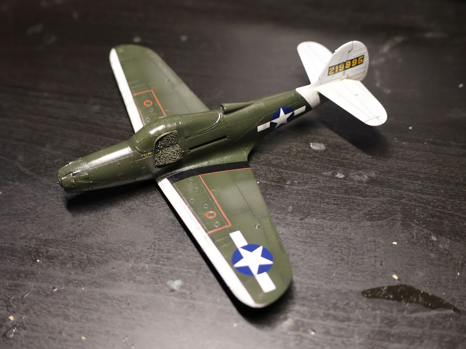 I put plastic rod to fill in gun openings in places where 0,303 guns were mounted. After dry I will cut them and sand.