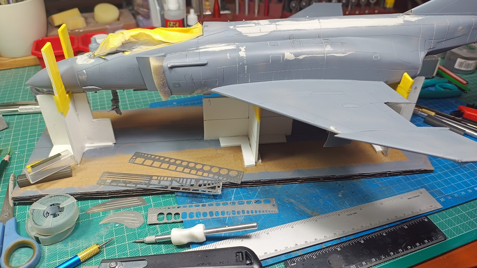 And for armor as well as aircraft, I’ve been known to fabricate a jig or template out of styrene, and cement it very sparingly to the model. Then I lightly scribe around it until I’ve gone as deep as I want, and remove the styrene piece.