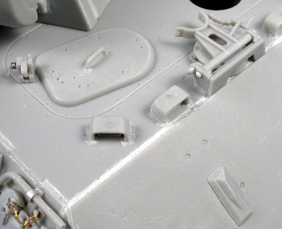 The locking latch of the radio operator’s hatch, the Dragon parts have to be improved by filling in with plasticard the hole
