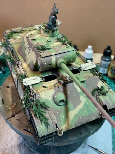 Did some research and some trips to the various Ardenne museums … looks like the majority of new Panther initially had all their side-skirts prior the offensive. There is just one photo of 215 with the front right skirt visible during the first days of action.