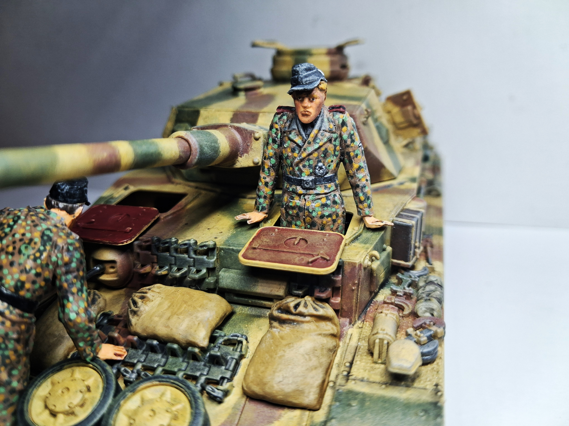 I’m almost done painting this panzer 4 (TAMIYA) and I painted some miniatures from the Miniart set GERMAN TANK CREW (FRANCE 1944) 35060.
