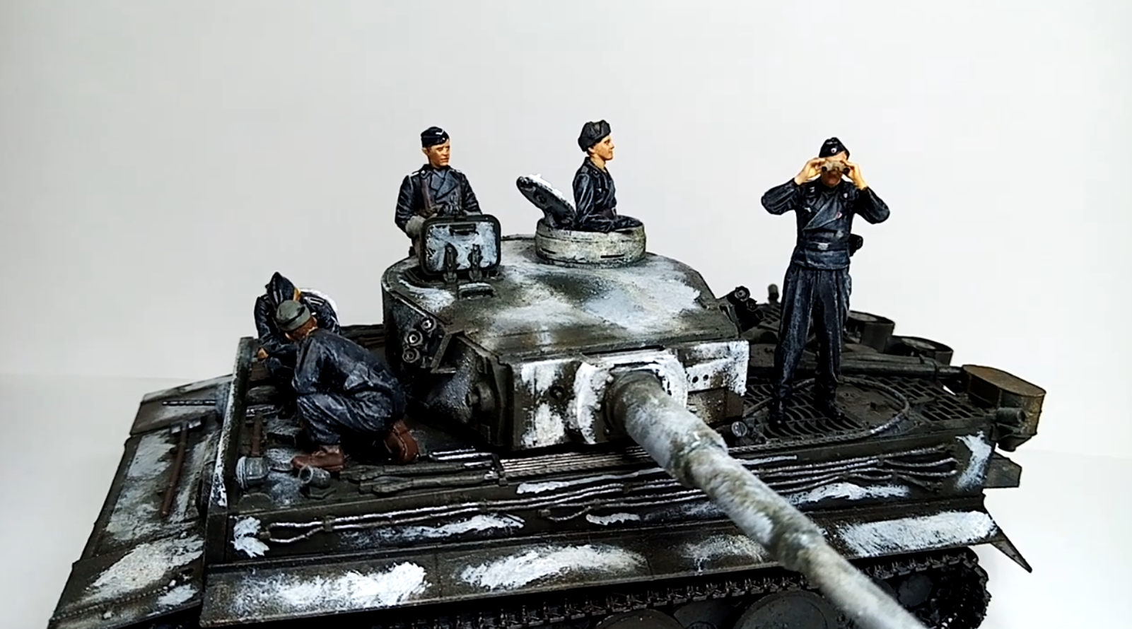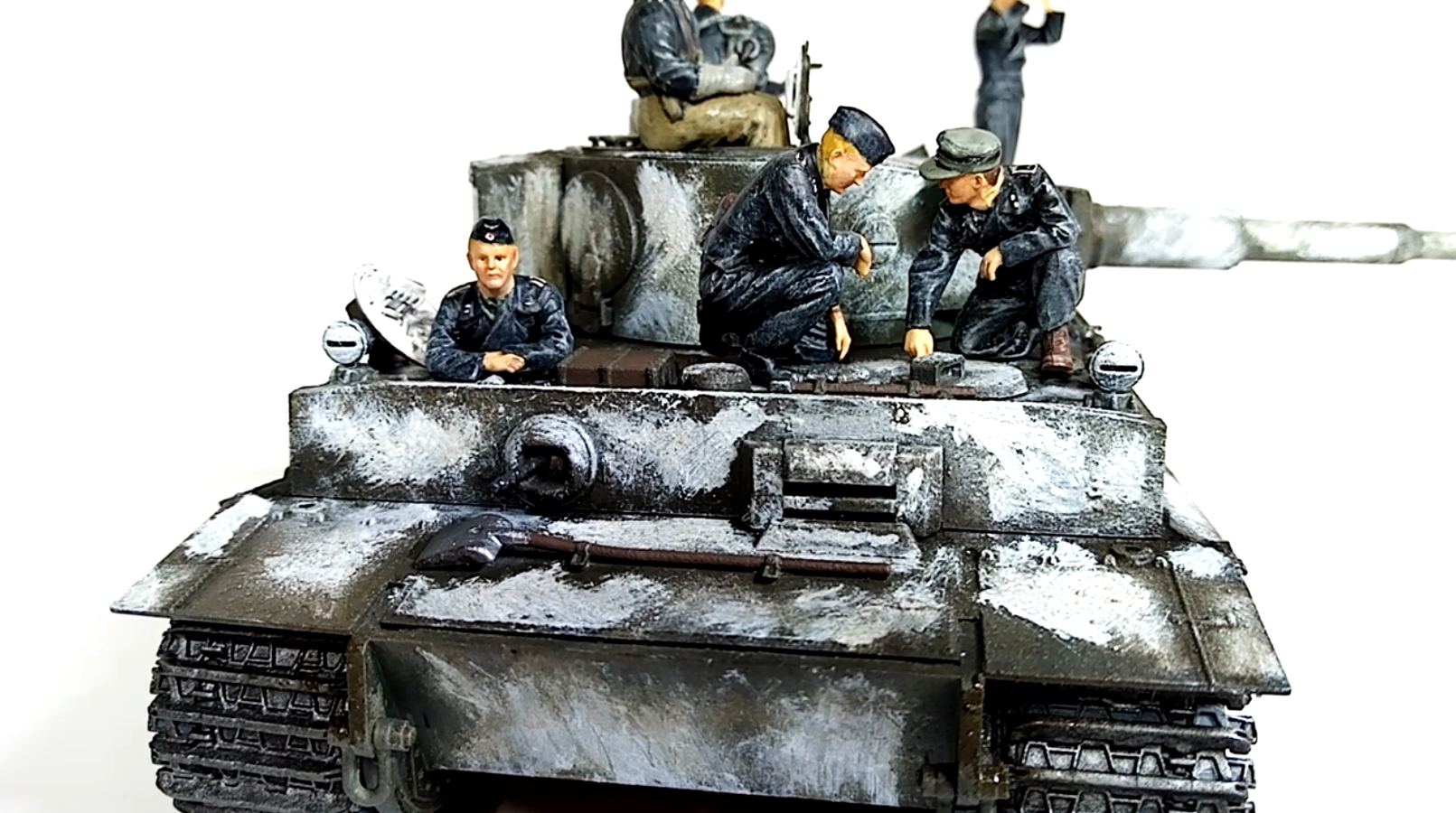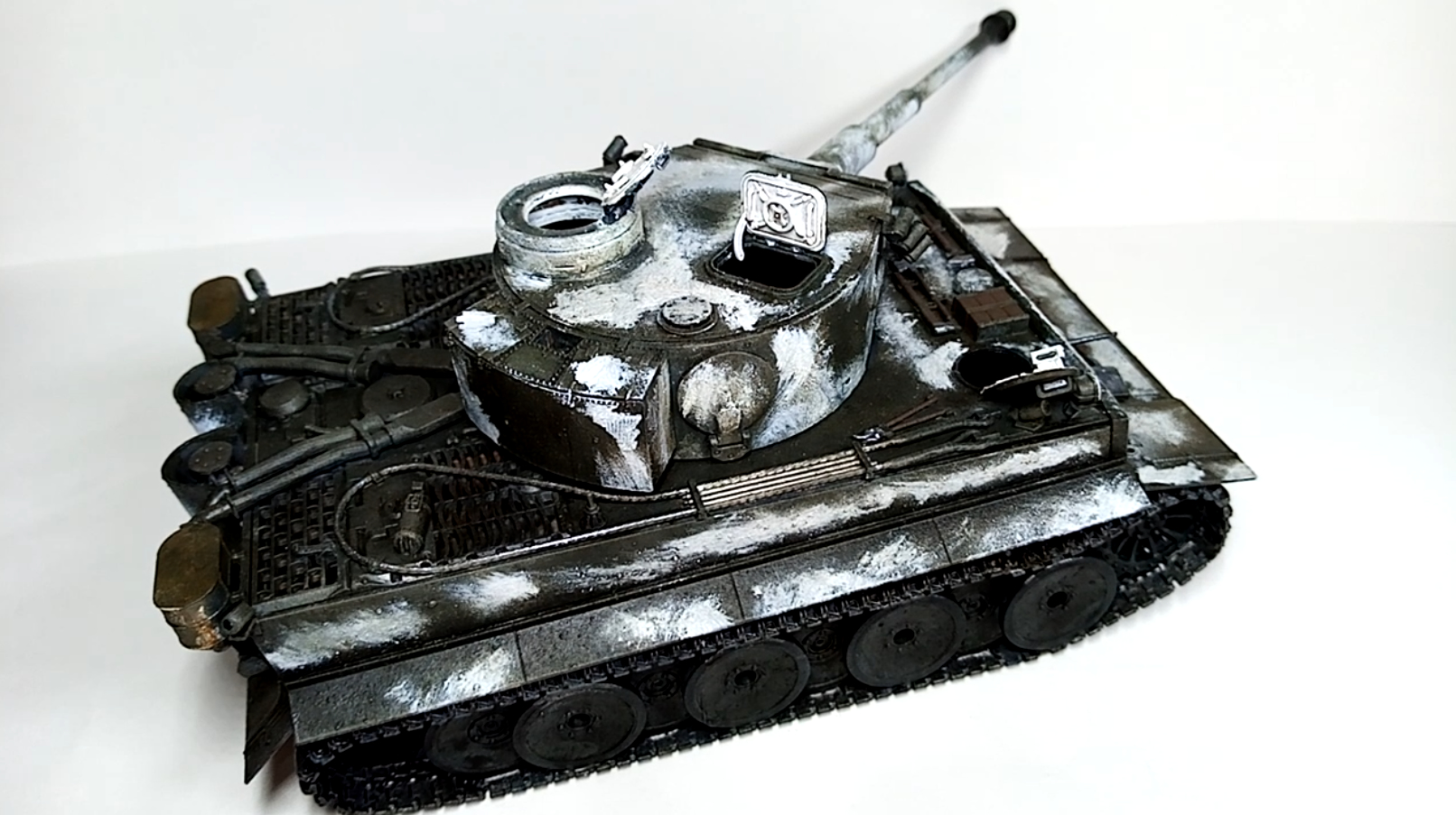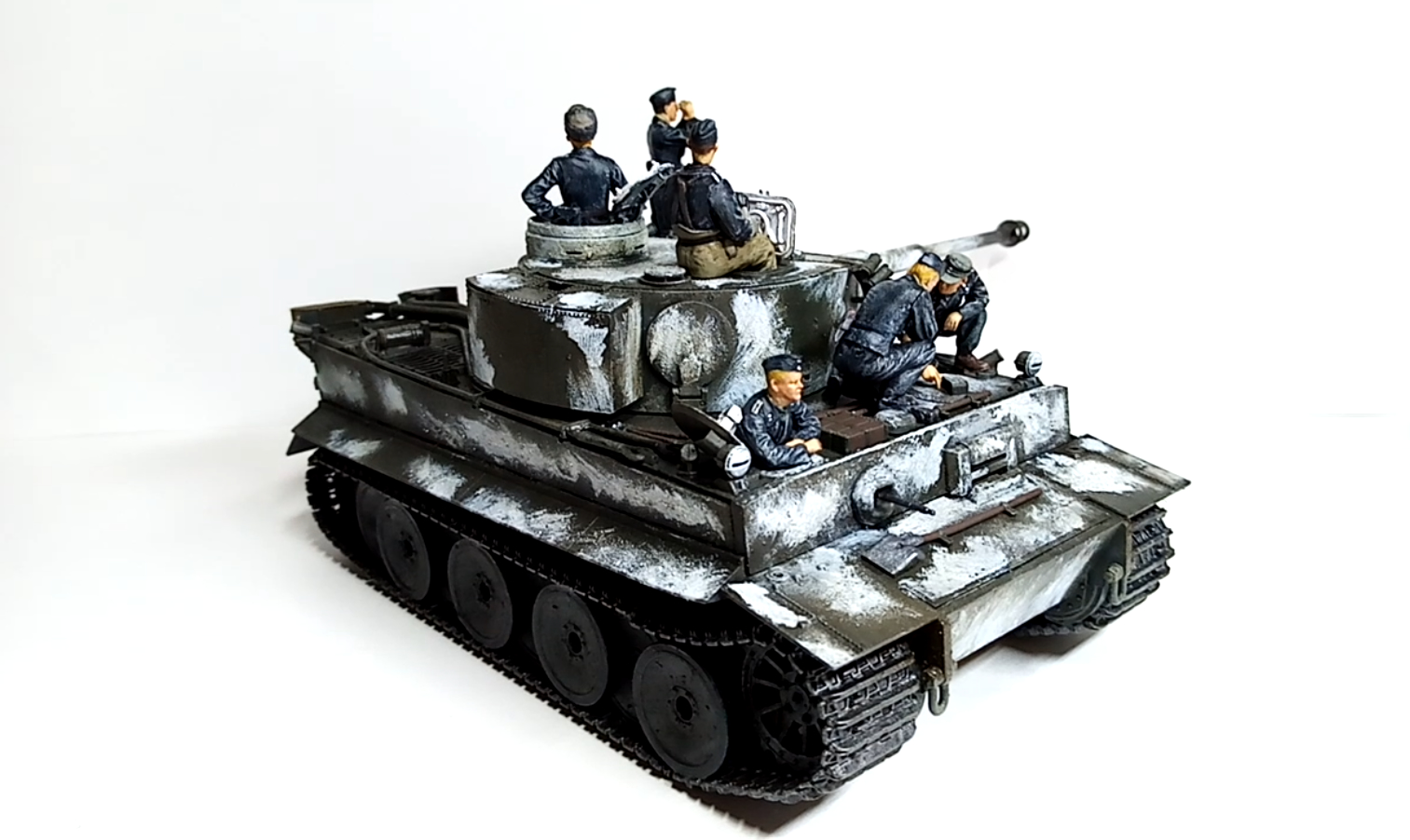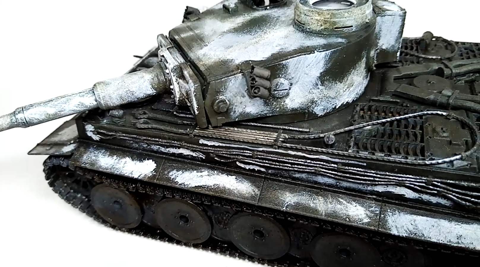 All of these Tigers were painted brown-green when they were new ( RAL 8000 ). Three of the companies promptly covered their tanks in whitewash, of varying quality. But Grossdeutschland left their Tigers green, driving around a white expanse of snow.