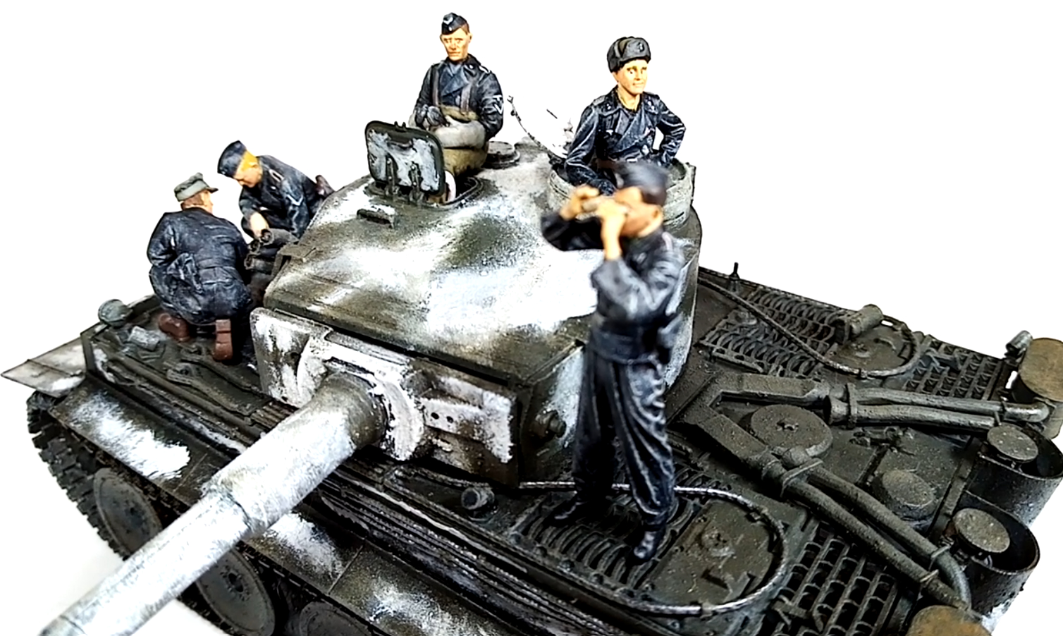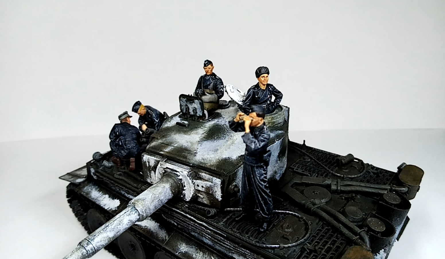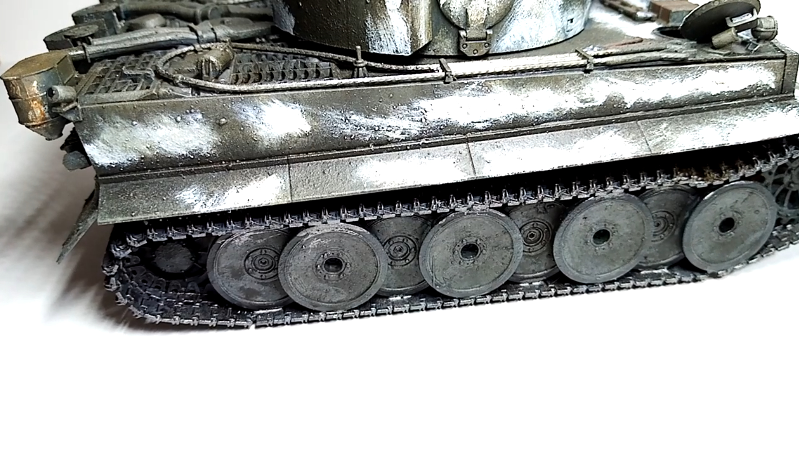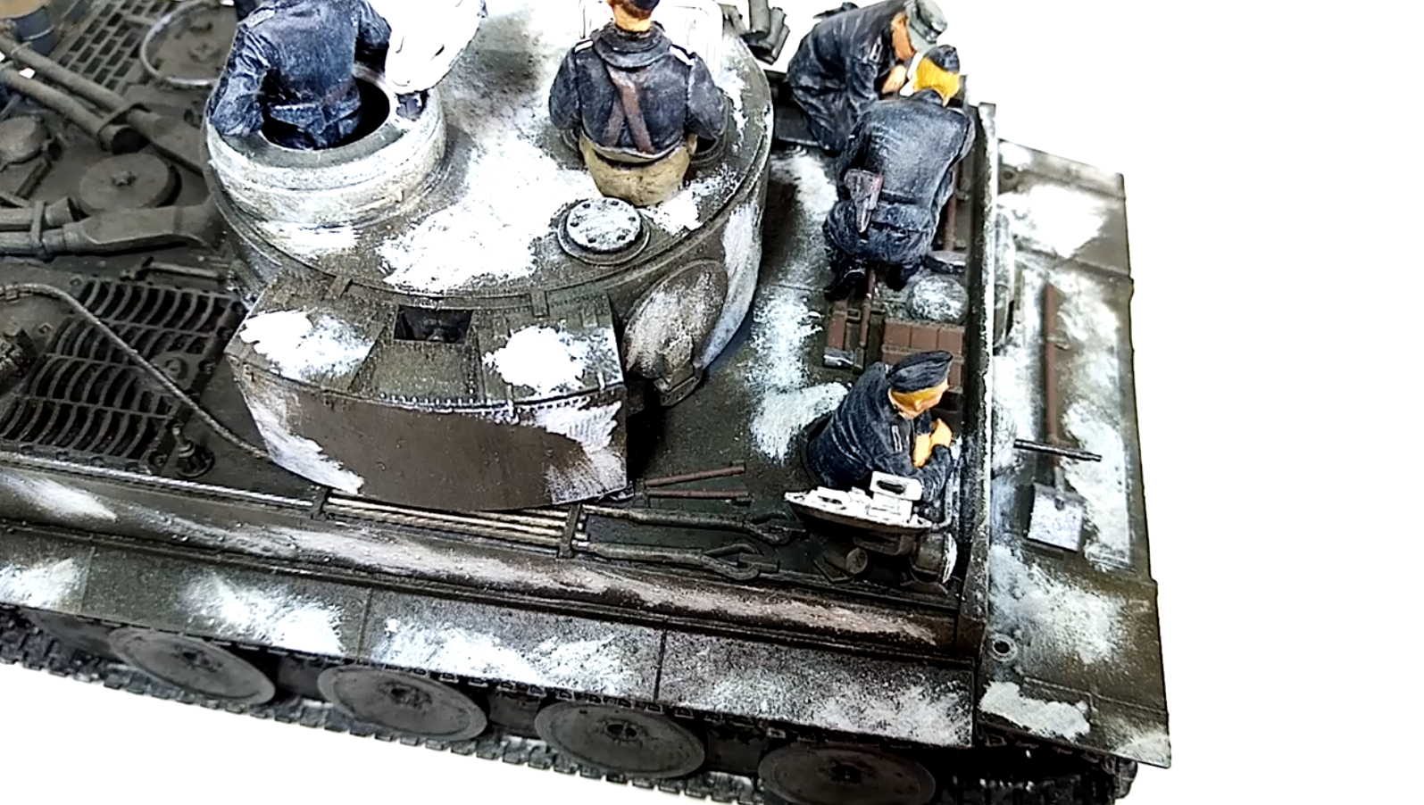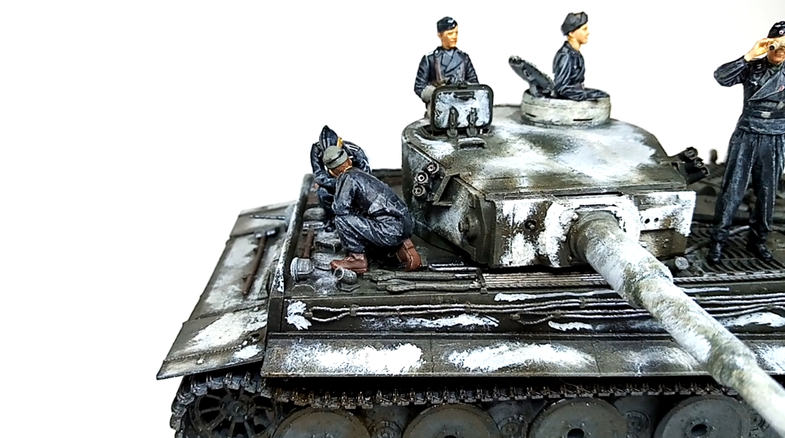 All of these Tigers were painted brown-green when they were new ( RAL 8000 ). Three of the companies promptly covered their tanks in whitewash, of varying quality. But Grossdeutschland left their Tigers green, driving around a white expanse of snow.