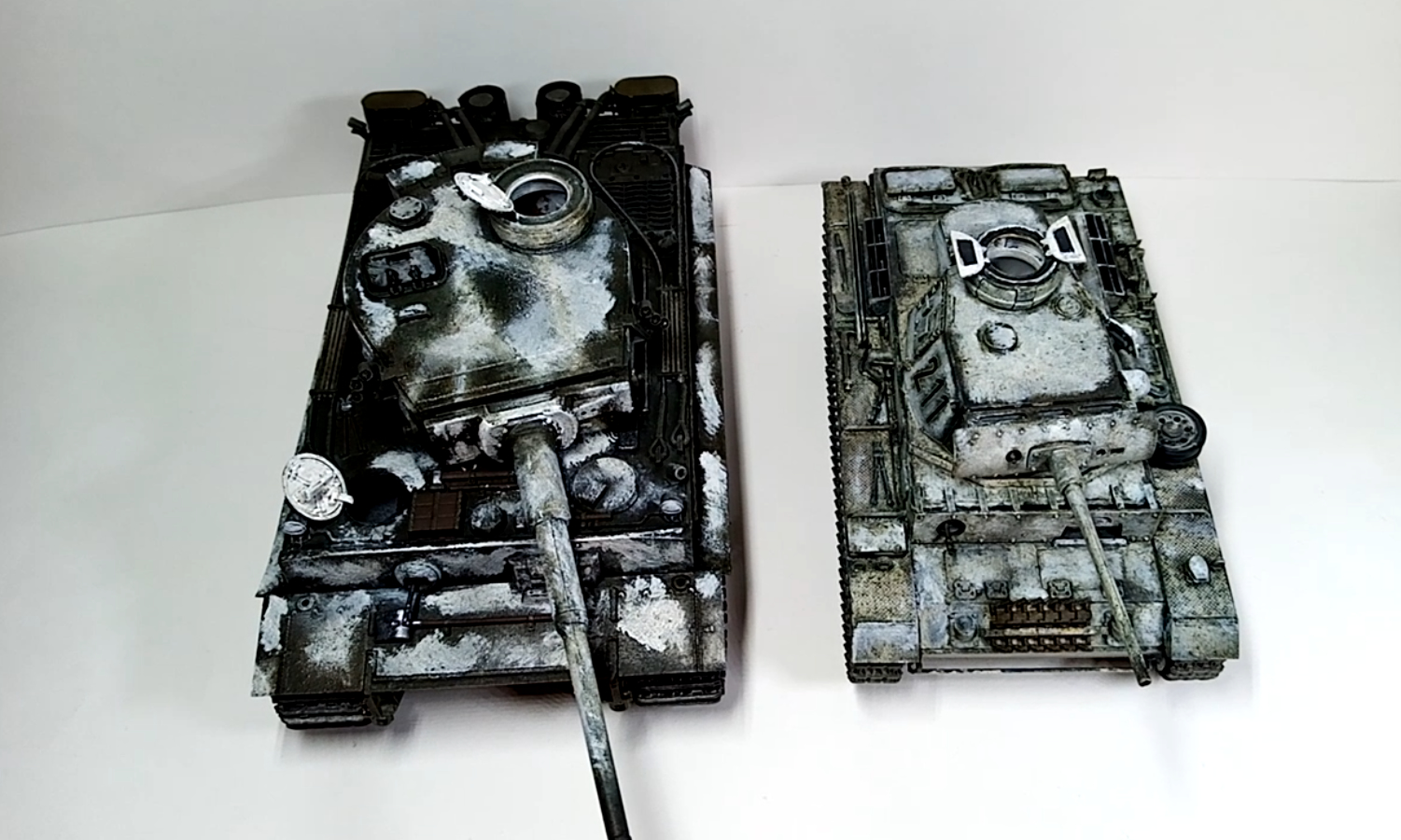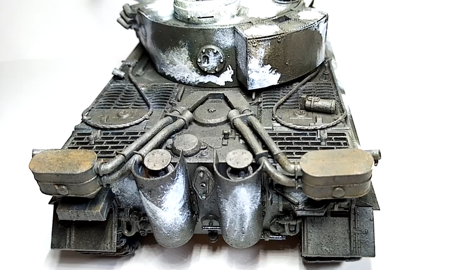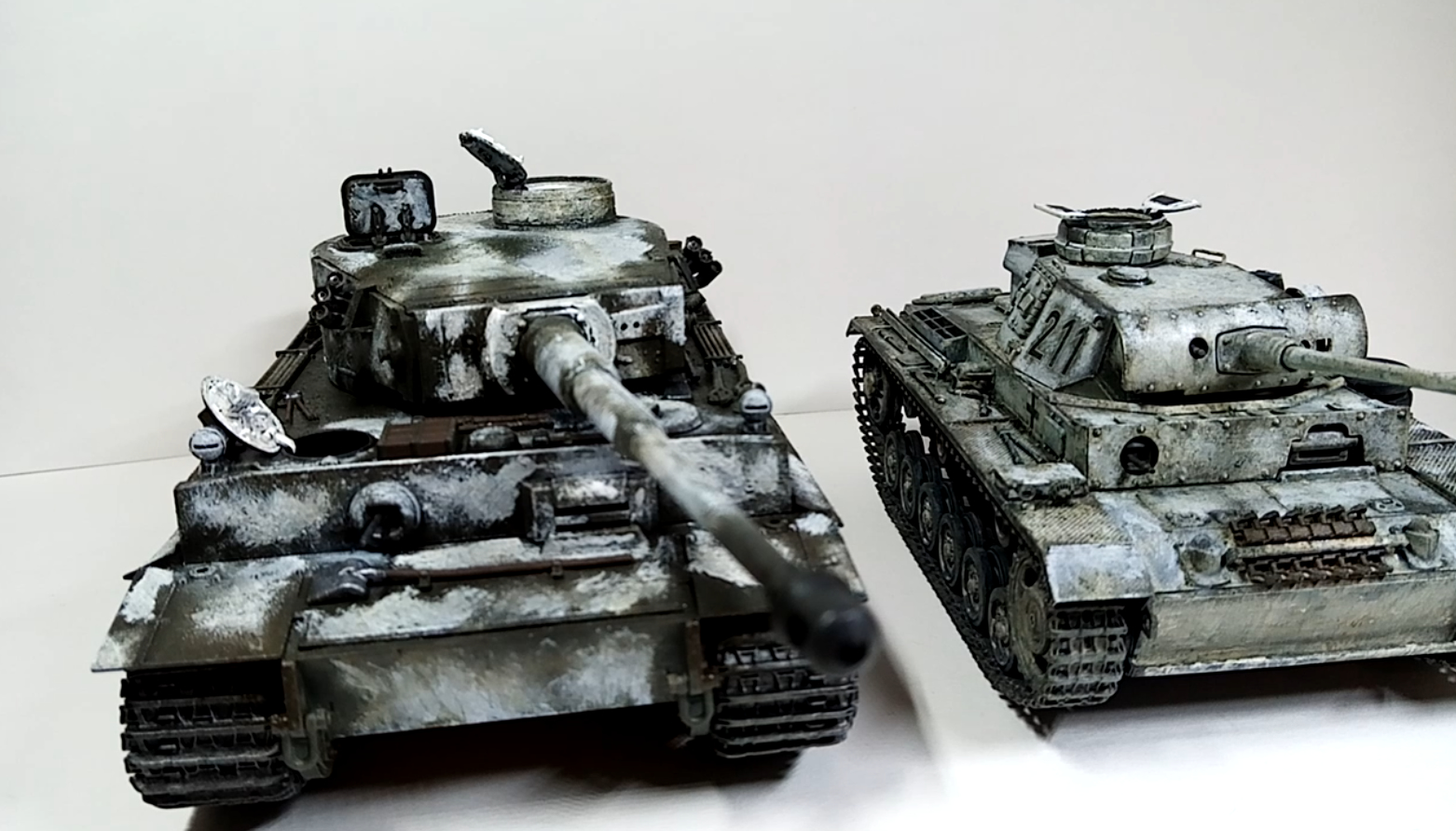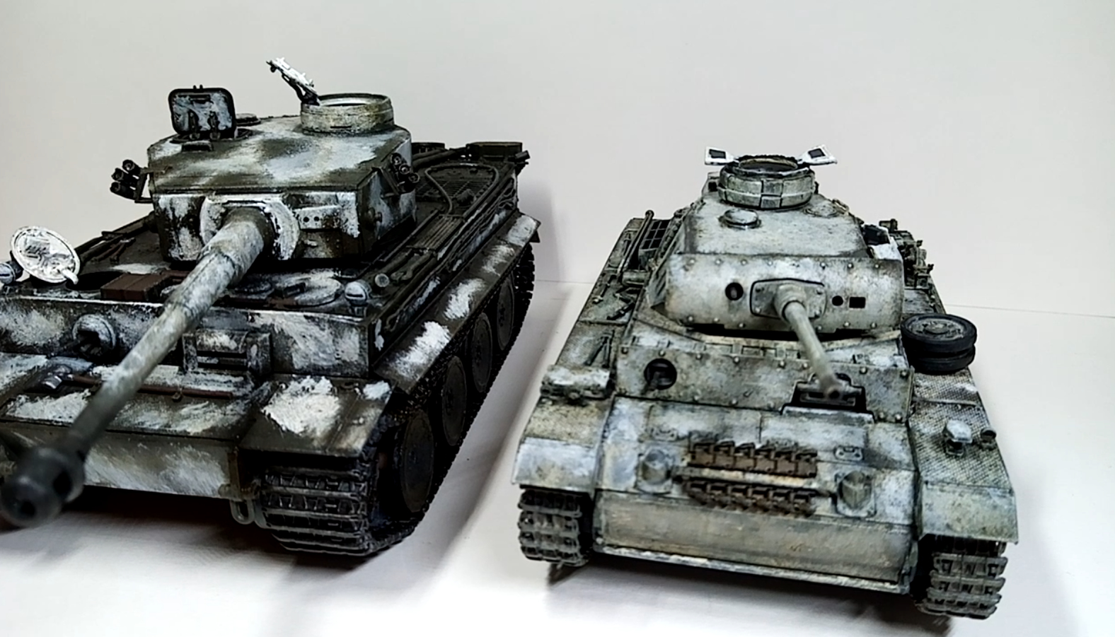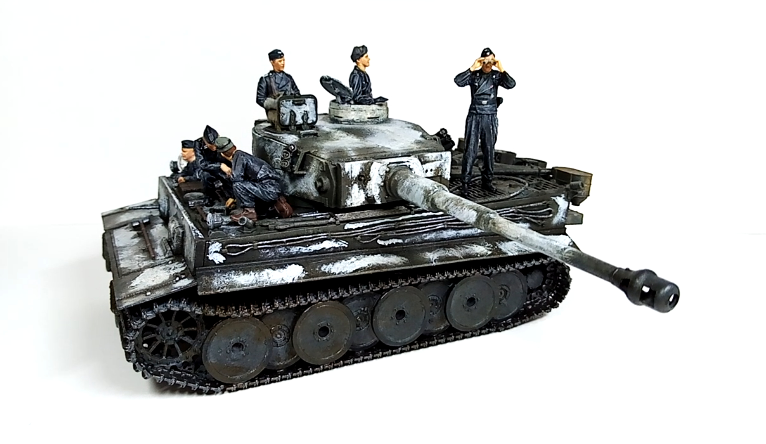All of these Tigers were painted brown-green when they were new ( RAL 8000 ). Three of the companies promptly covered their tanks in whitewash, of varying quality. But Grossdeutschland left their Tigers green, driving around a white expanse of snow.