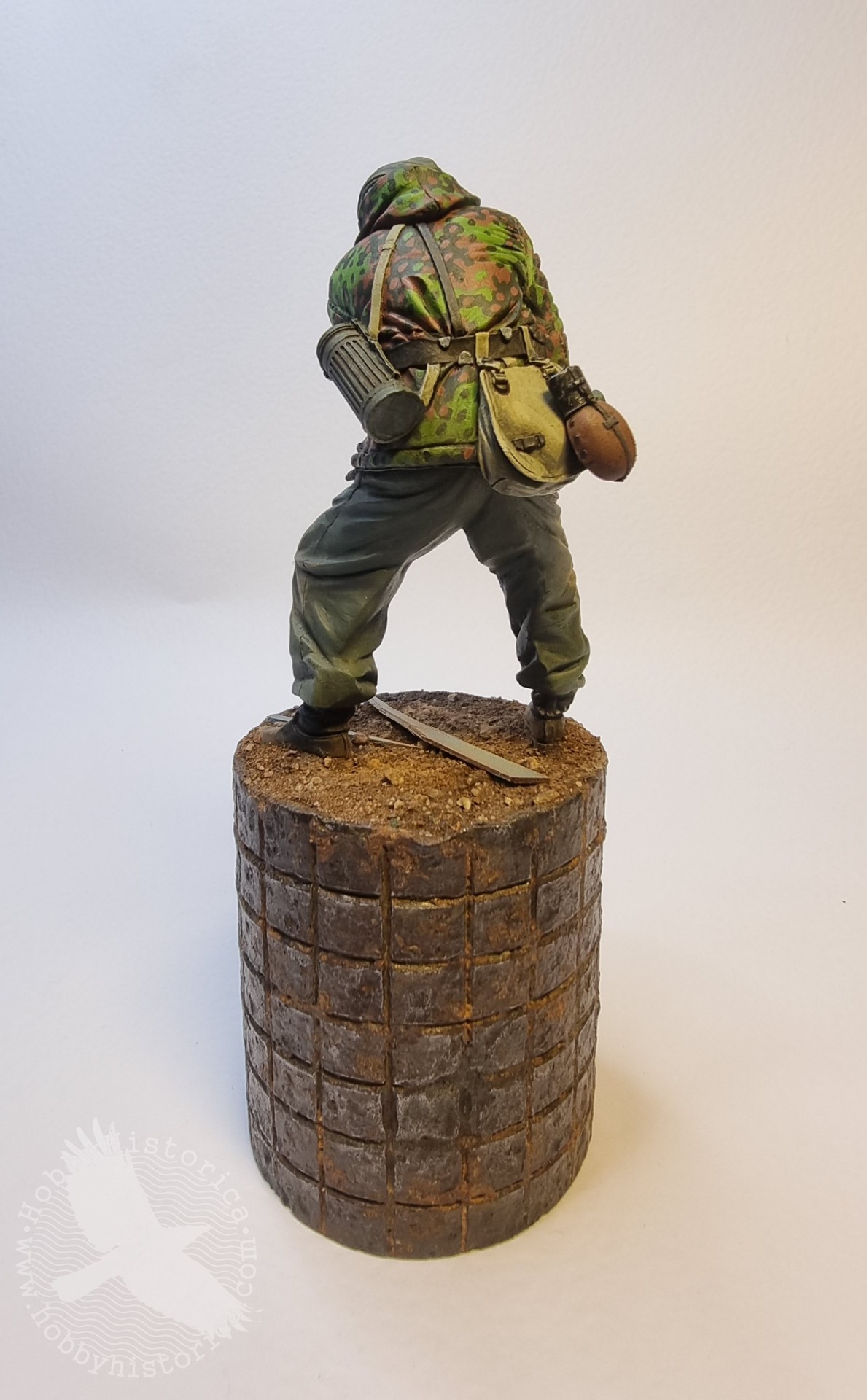 Some evenings ago I completed painting another one of Jeff Shius exellent 1/16 figures, which hopefully will find its way to a display cabinet soon. I painted it with acrylics and I added decals from Alliance Modelworks to the cap. The base is a M24 shrapnel sleeve which was found in the Kurland Kessel.