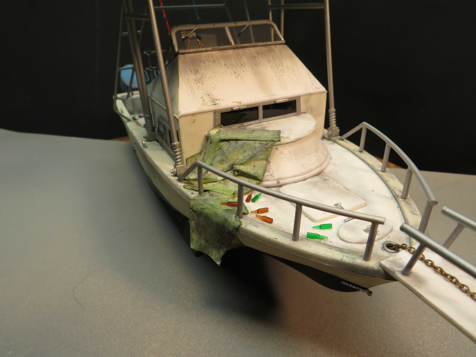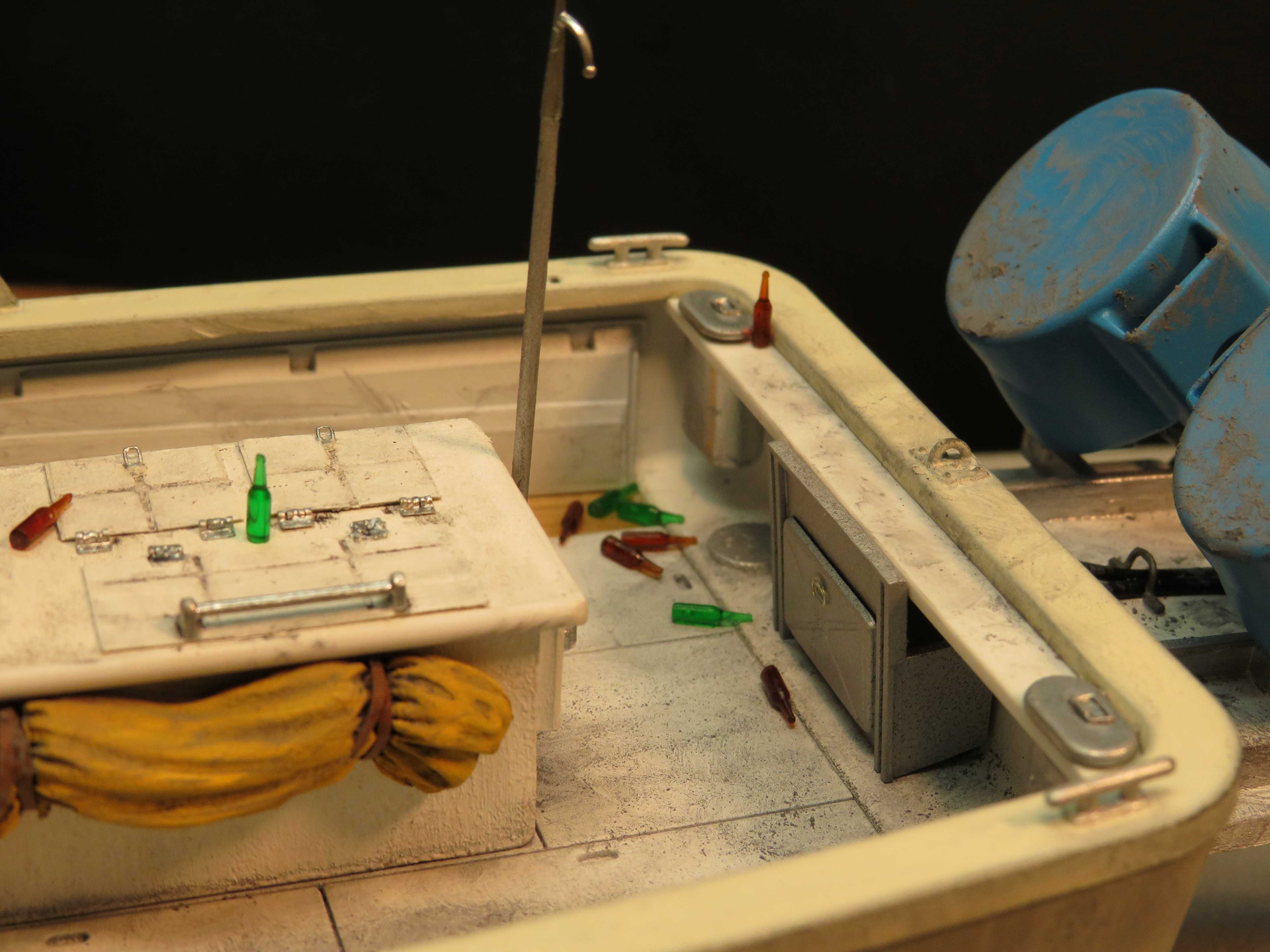 Rob beat me to it… looks more like Heineken bottles than Pabst. Nice conversion and gotta be one of the smaller vessels to have a tuna tower !