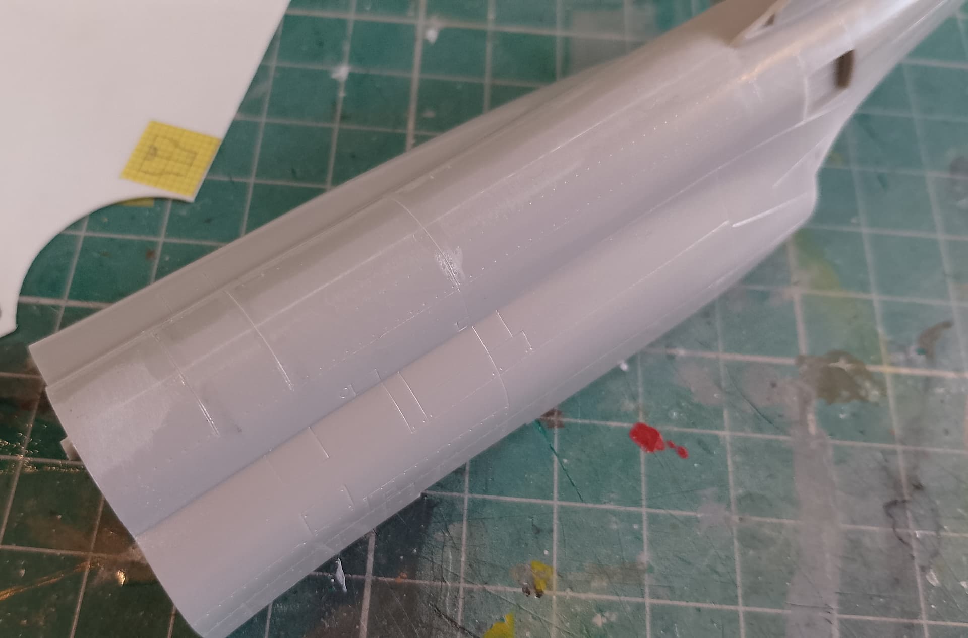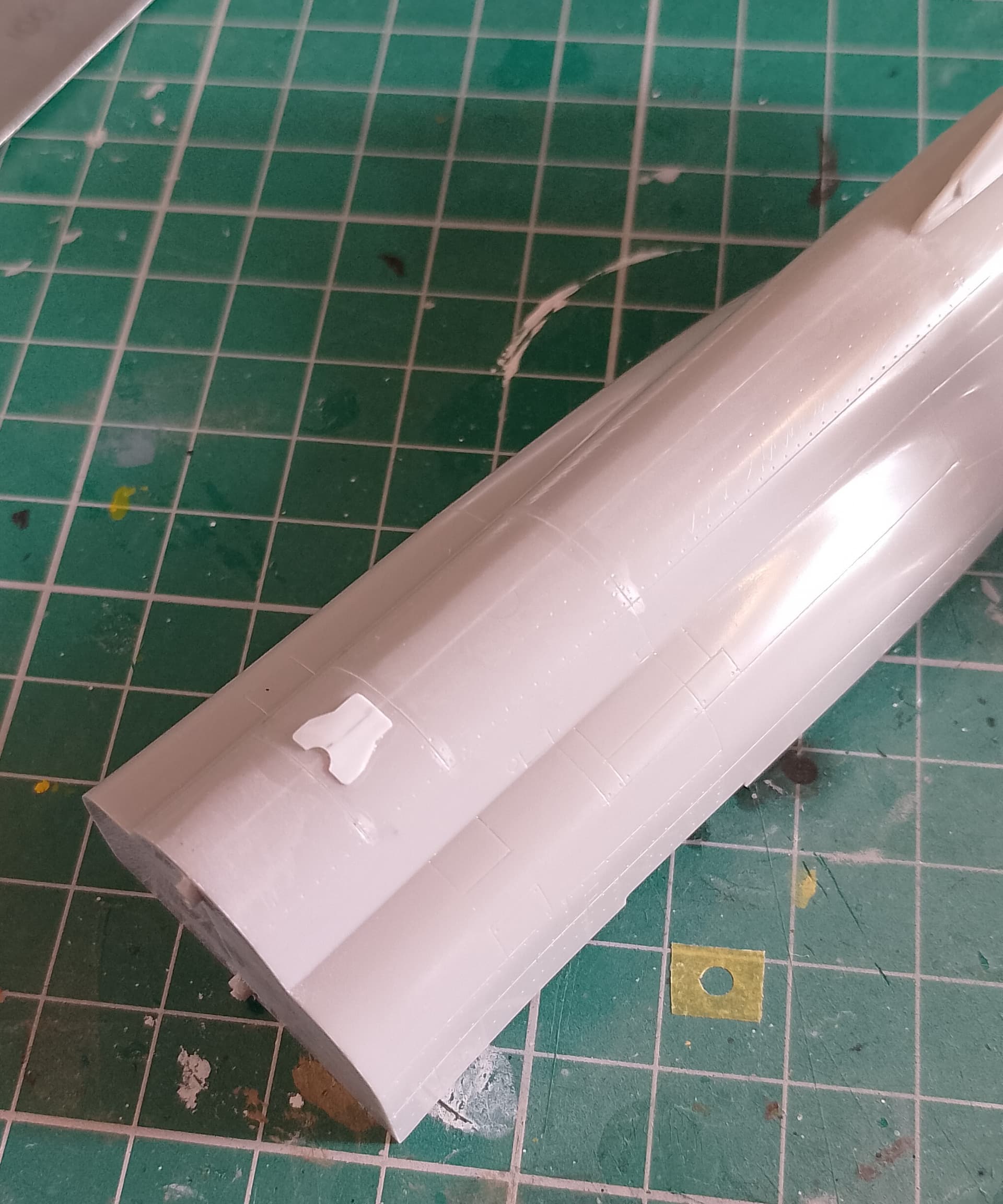 Assembled a few bits like the centreline and port drop tank. Also got those fuselage panels and rudder top cleaned up and smooth.