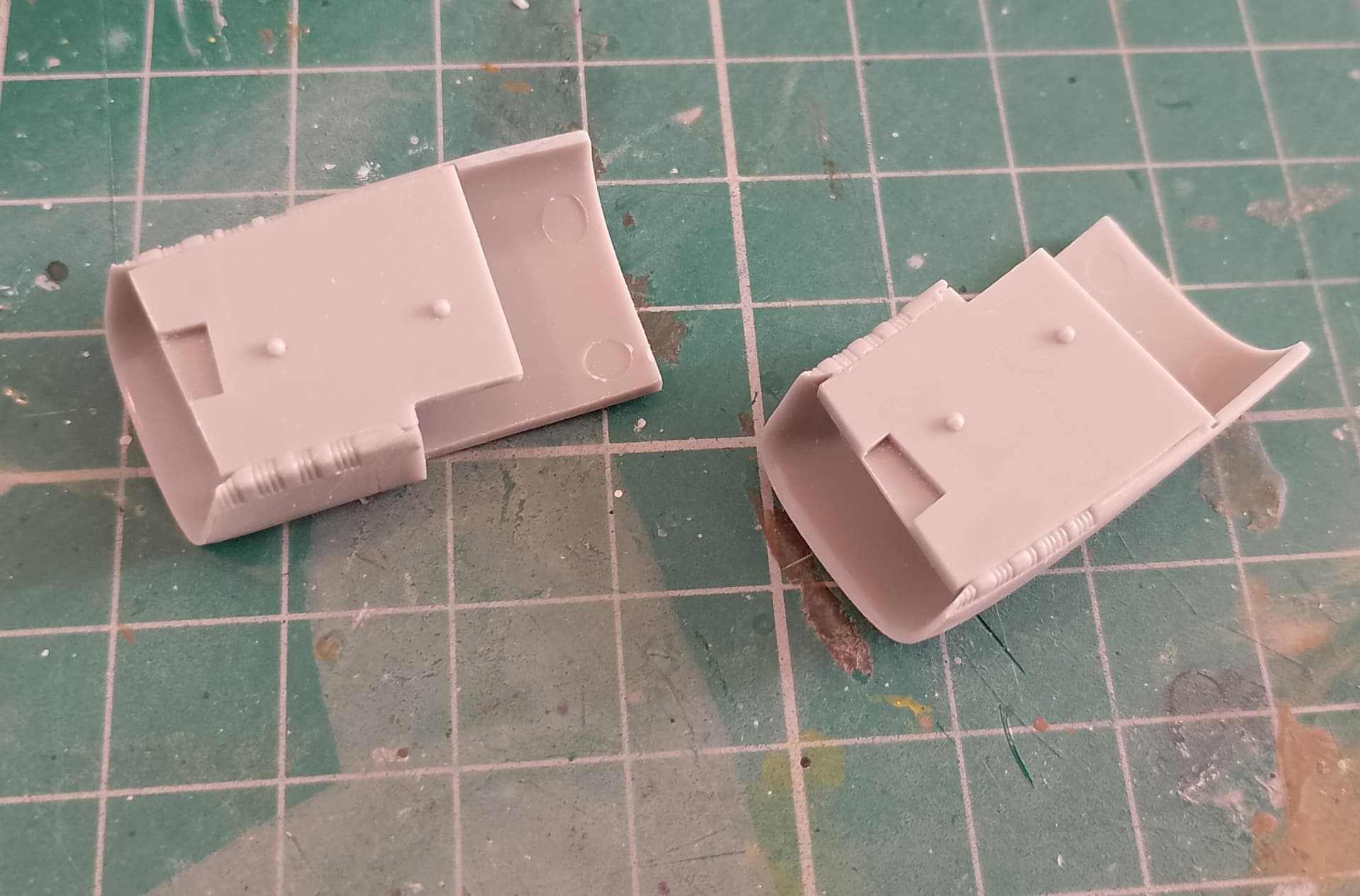 Got the fin top and covers for the RF-4 photoflash ejectors in place. Fit was a bit sloppy, especially on the covers so they’ll need a bit of work. I remember having the same problem on the J boxing a few years ago.