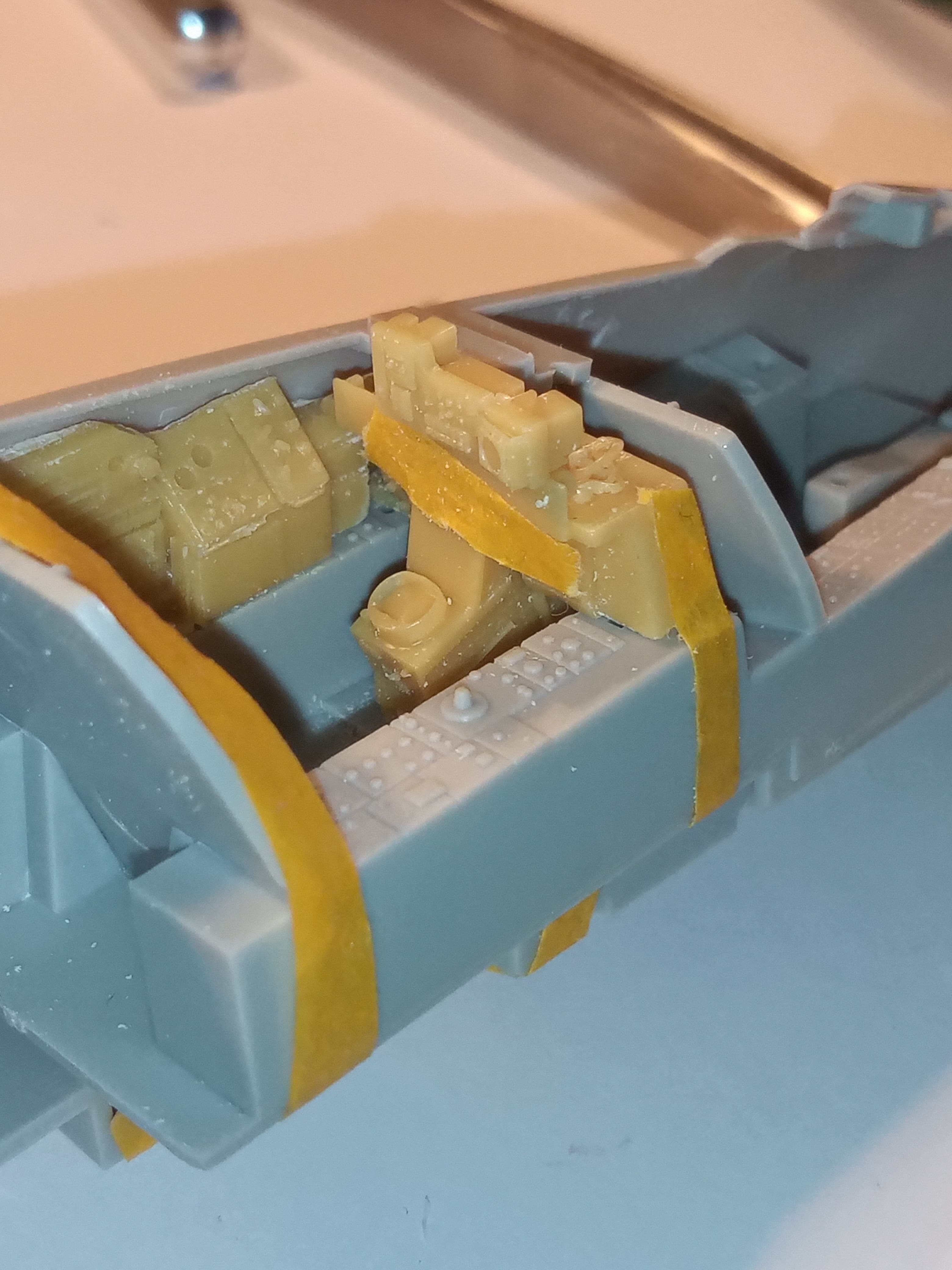 The Aires set is nice, but wow … It’s going to take a lot of carving up the fuselage on the kit to get it to fit, more than I thought …