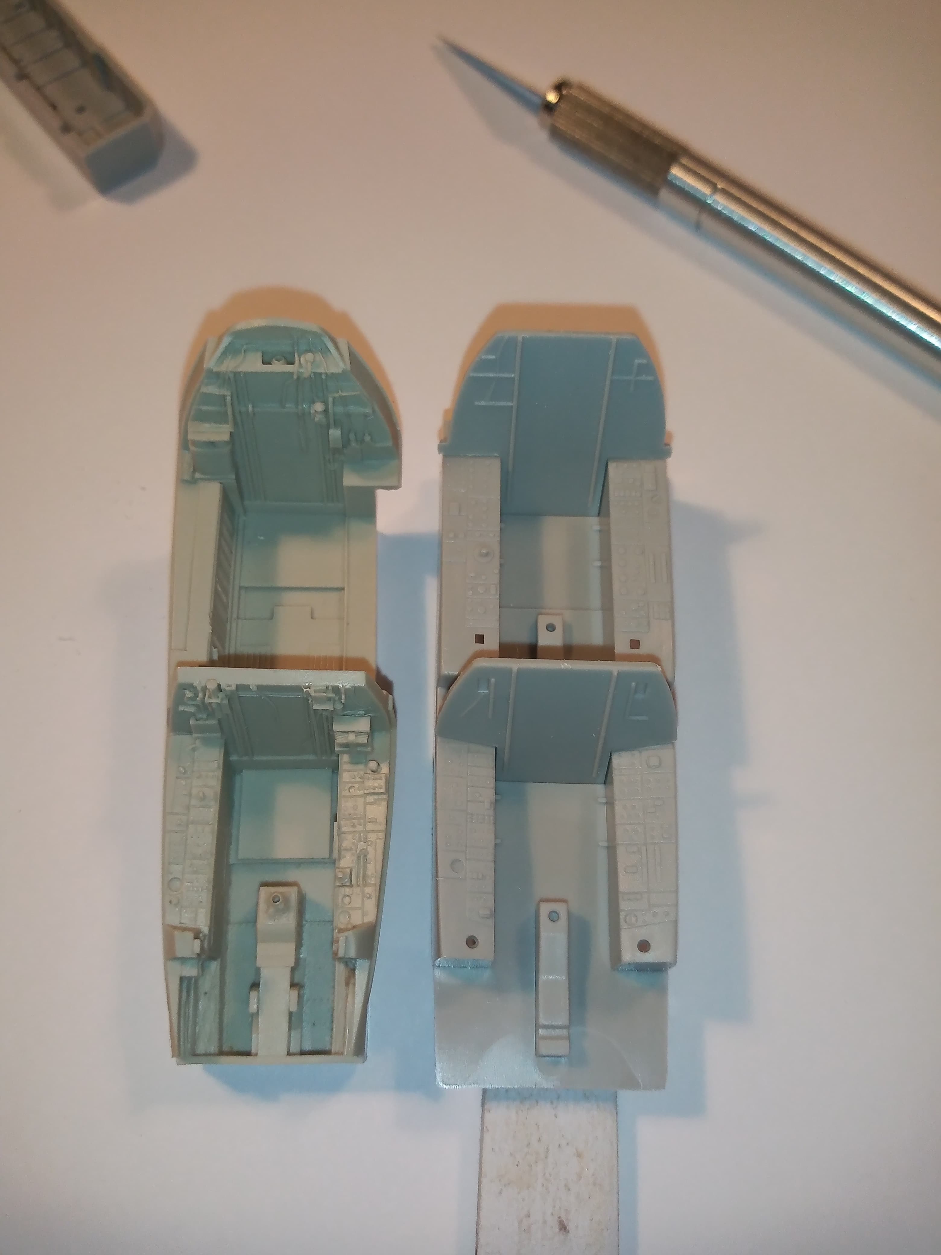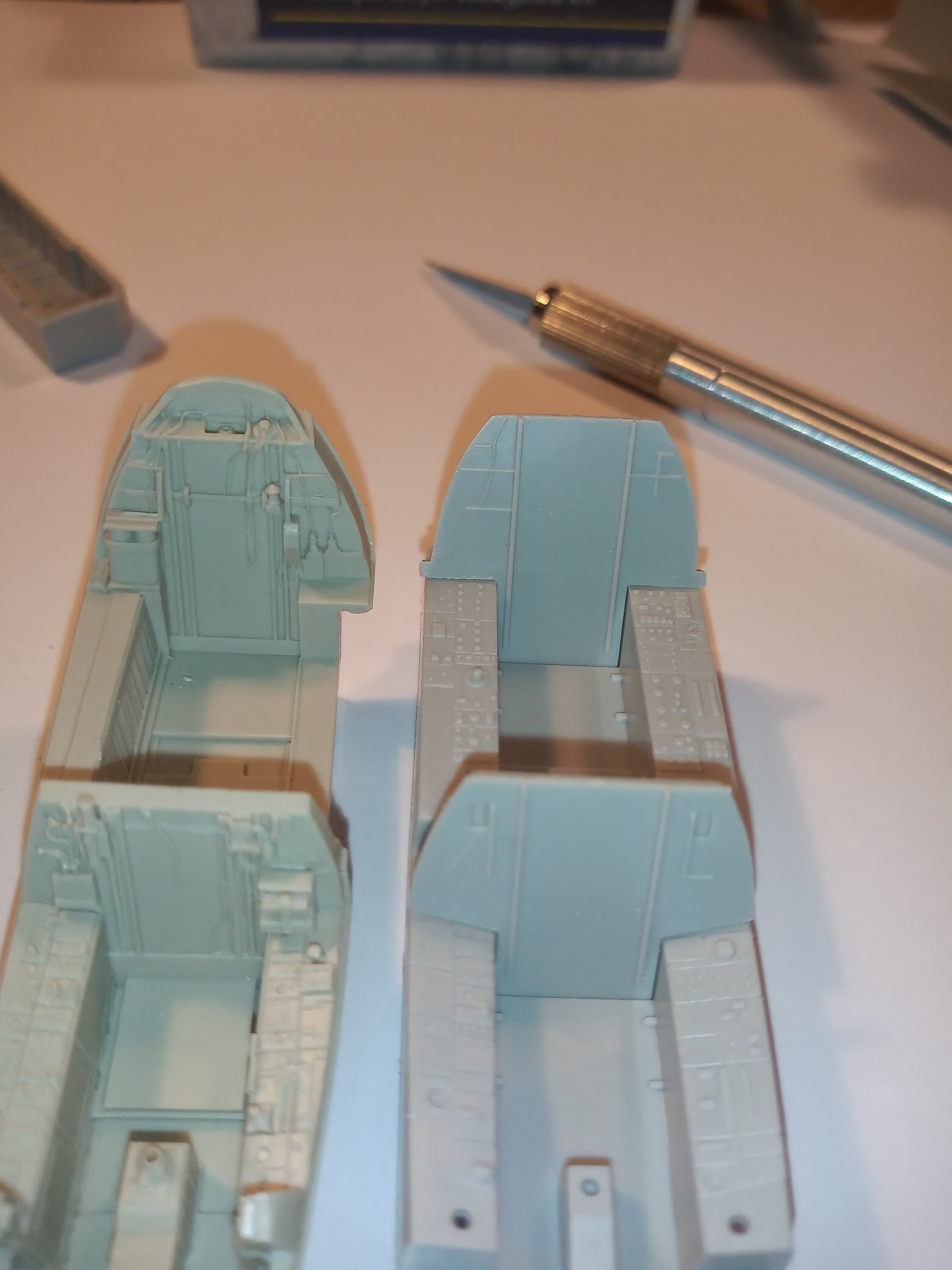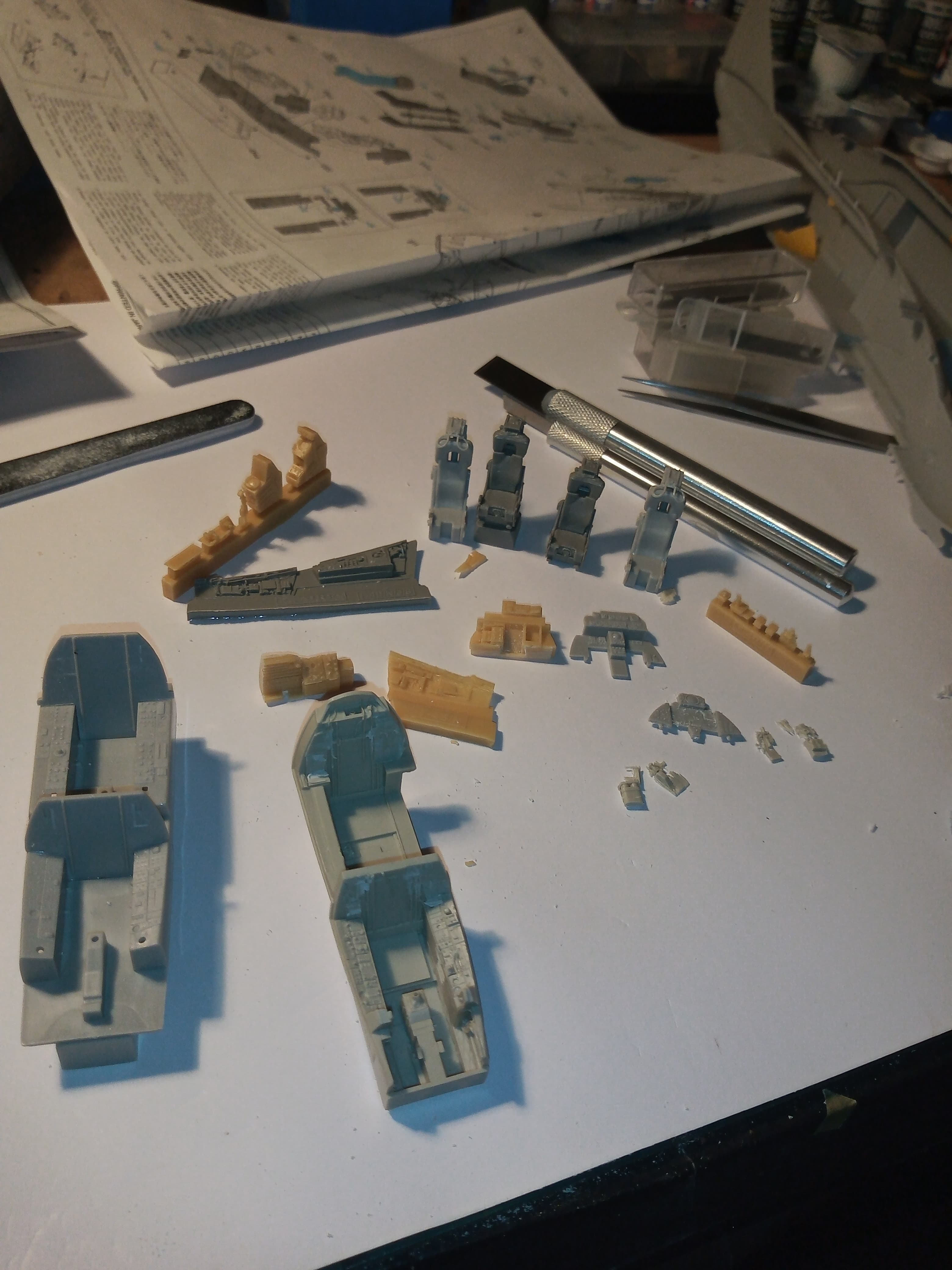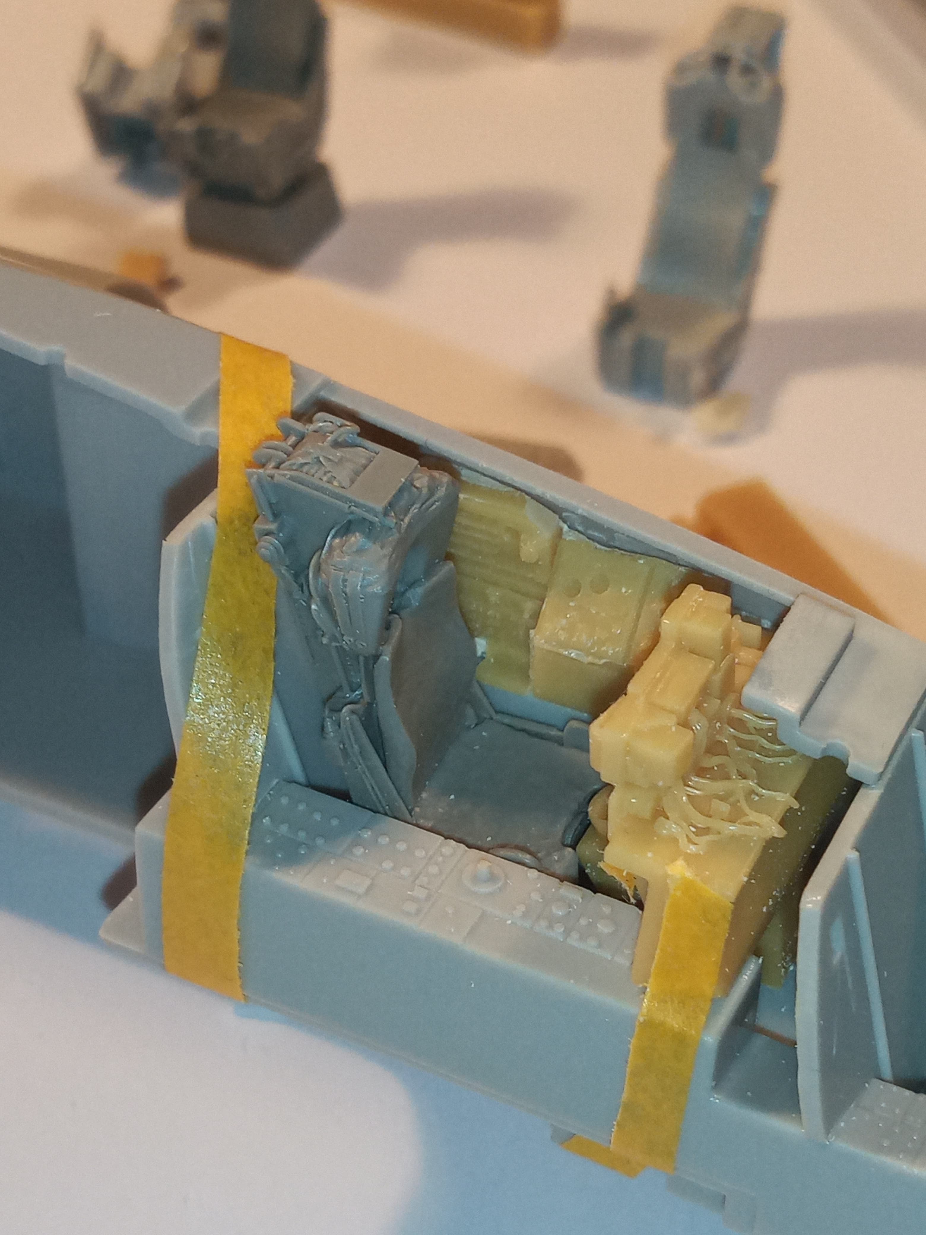 Aires seats with kit ejection pull handles added (not the PE ones). Also, the Aires seats are smaller by a bit and sit lower, so I need to raise them up about 3 to 4 mm as per all the images I have seen.
