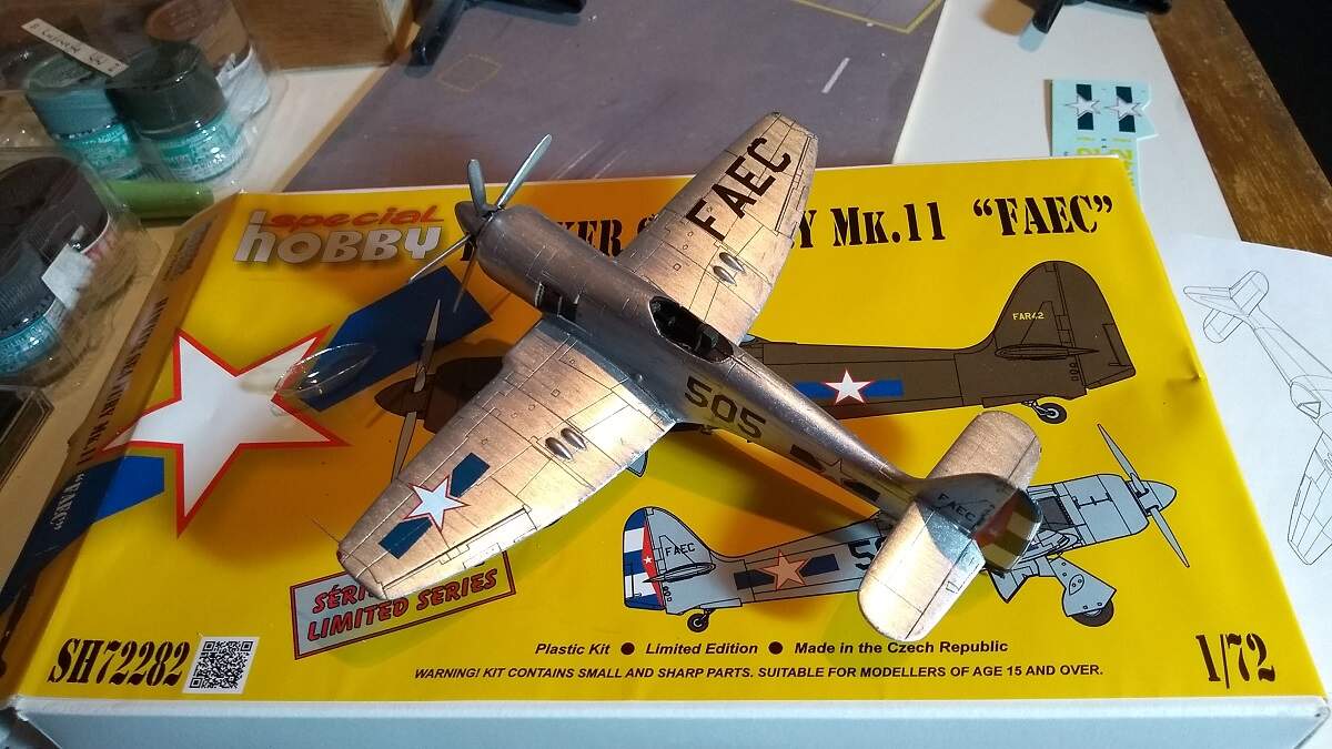 Next come the blue underside and fuselage sides, the blue must be mixed…