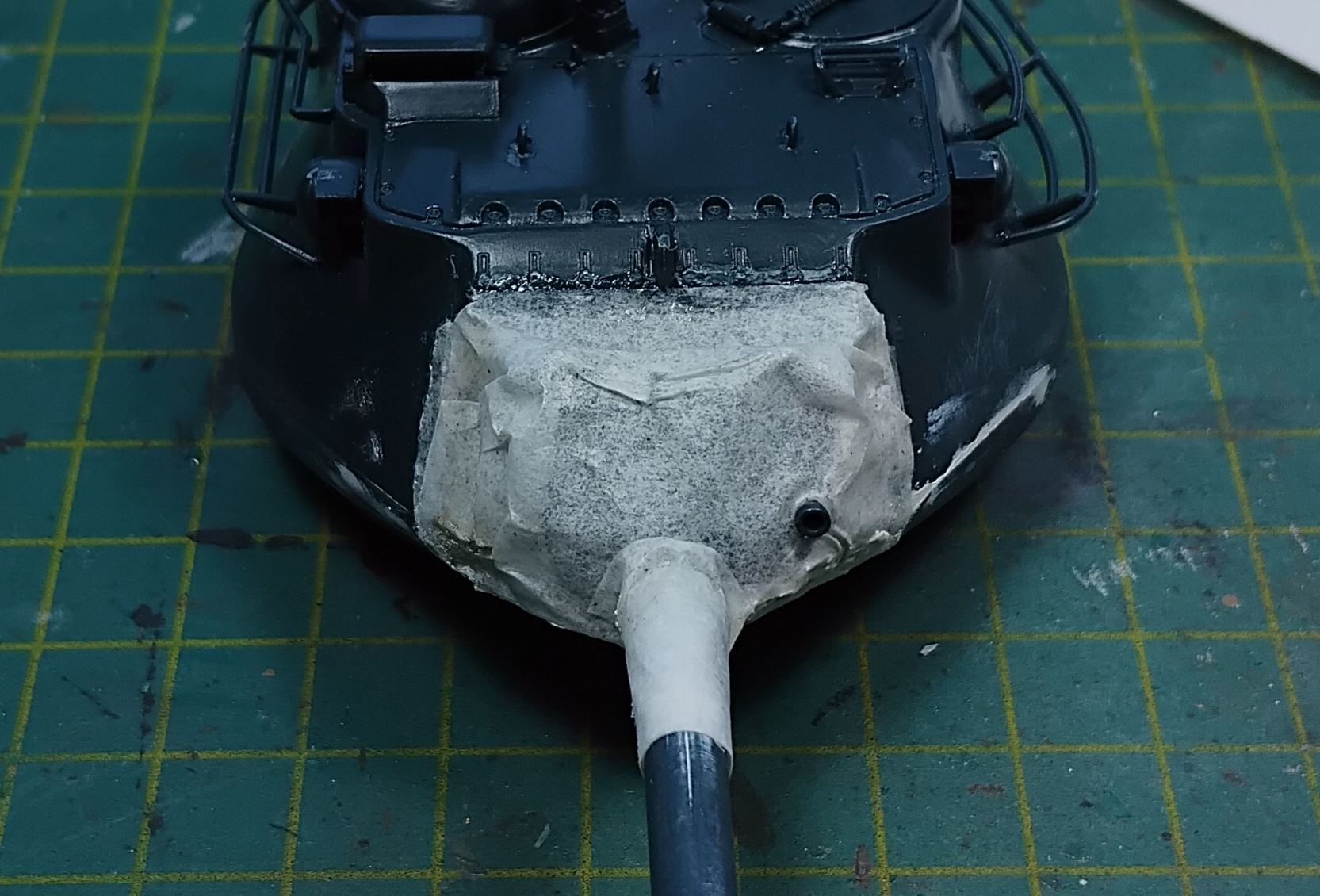 Now I have to wait until the decals arrive for more painting and weathering. And before I forget, the canvas gunshieldcover: