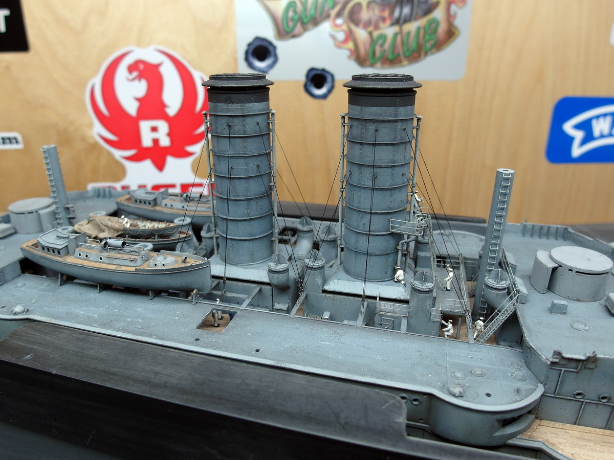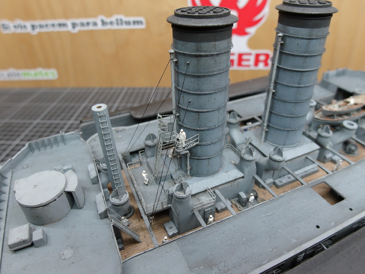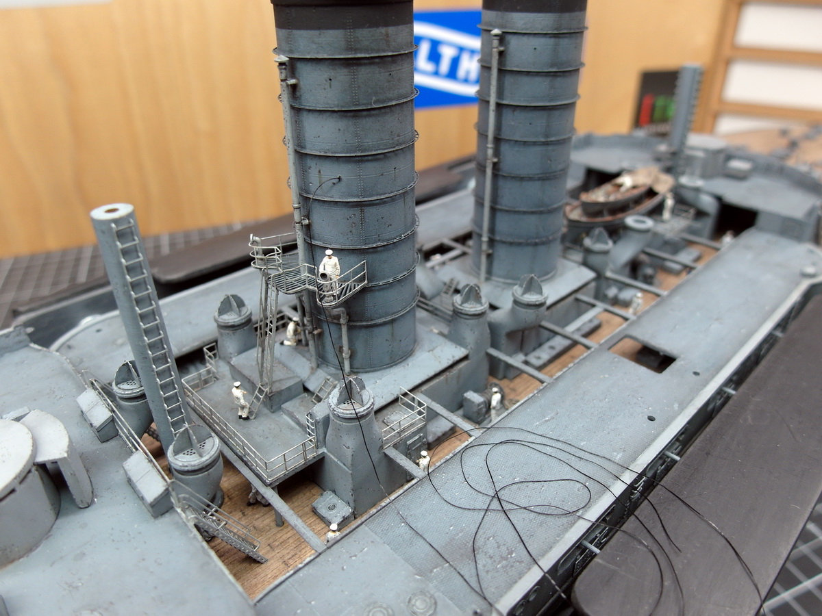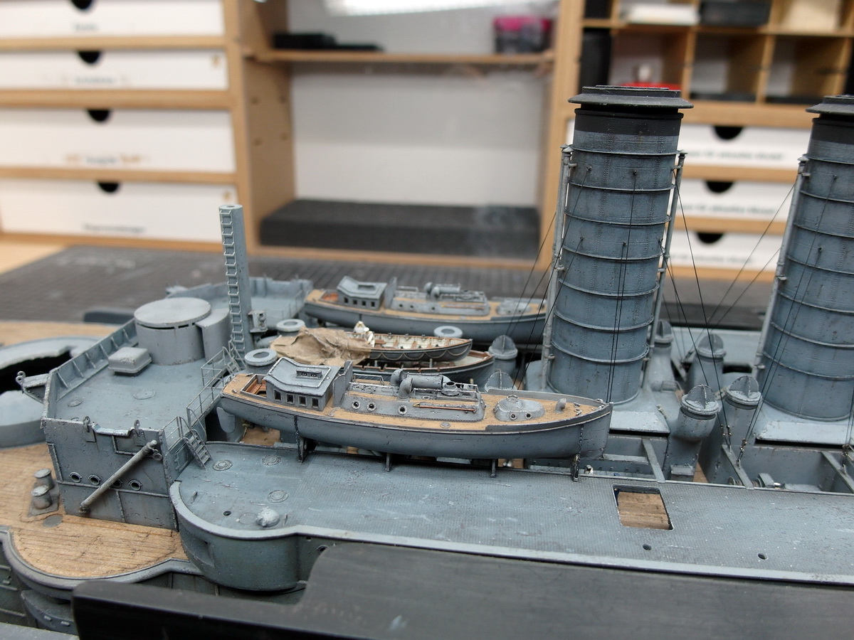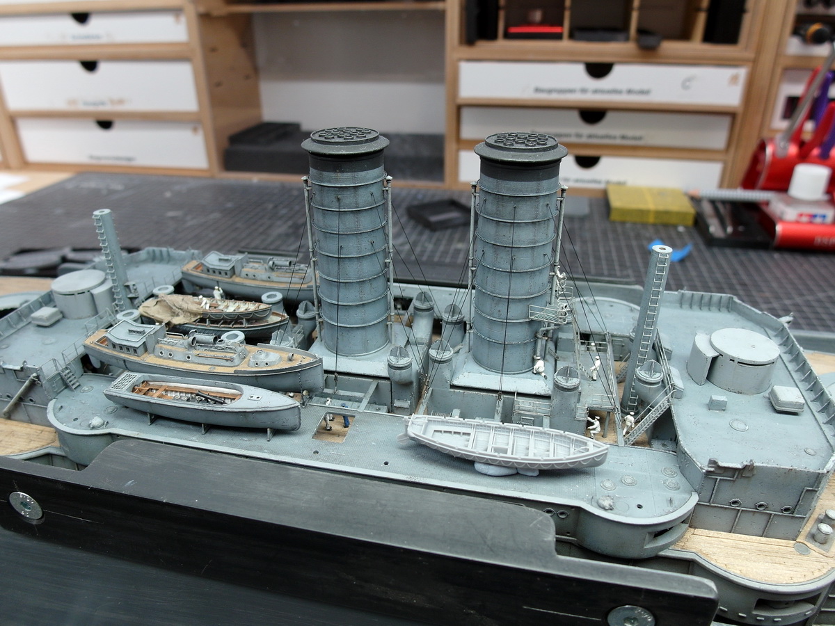 I’ve pushed the pinnaces back again because I first have to take care of the funnel’s shrouds.