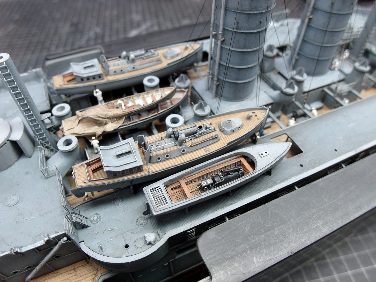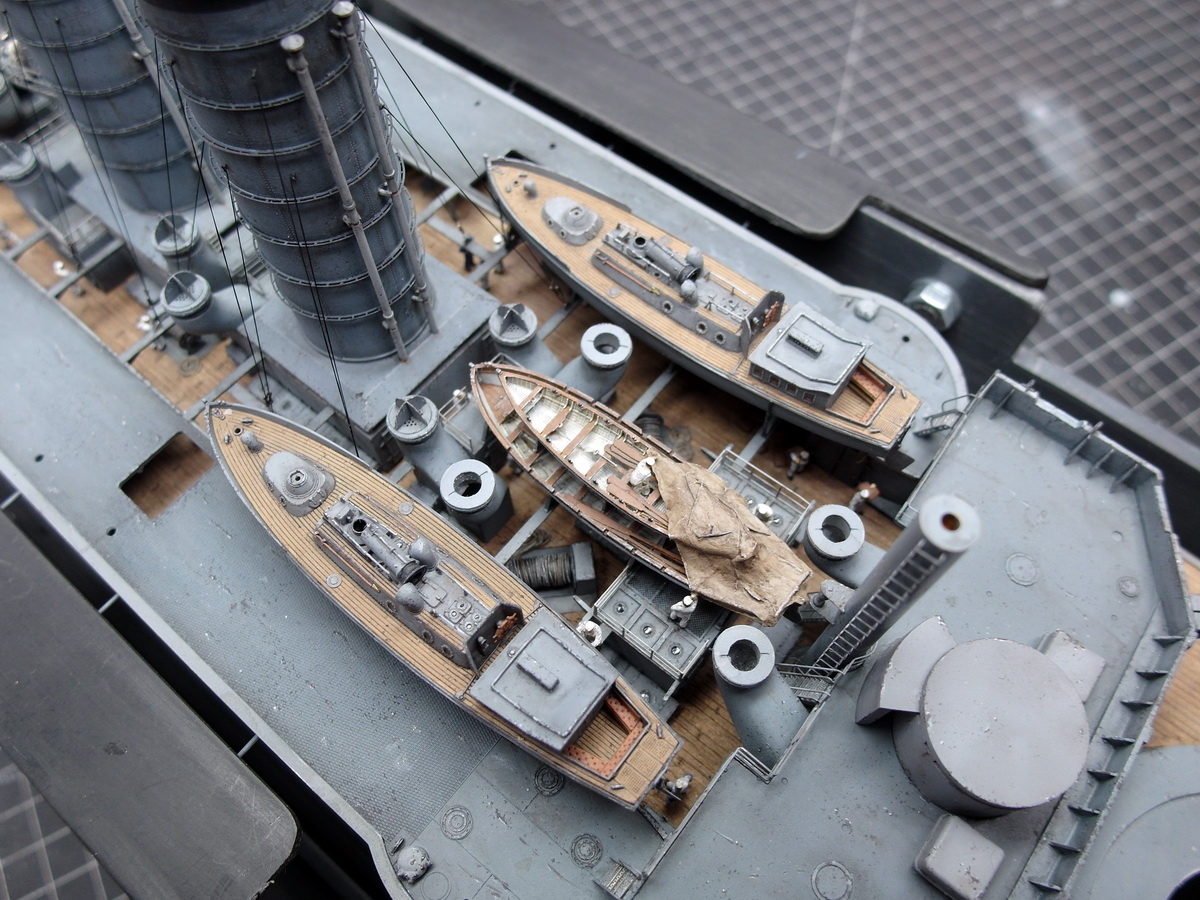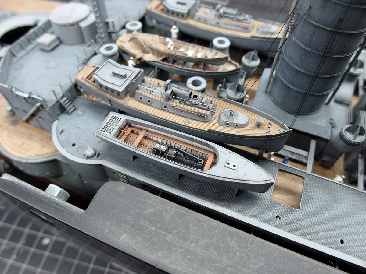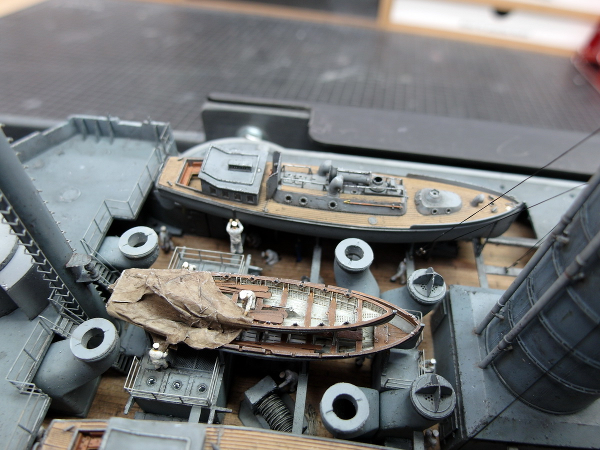 I need to refinish the deck where the pinnaces rest. During all the adjustments, I scratched the paint surface and had to patch it up. I’ll have to go back to that.
