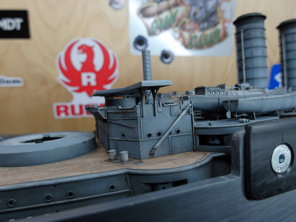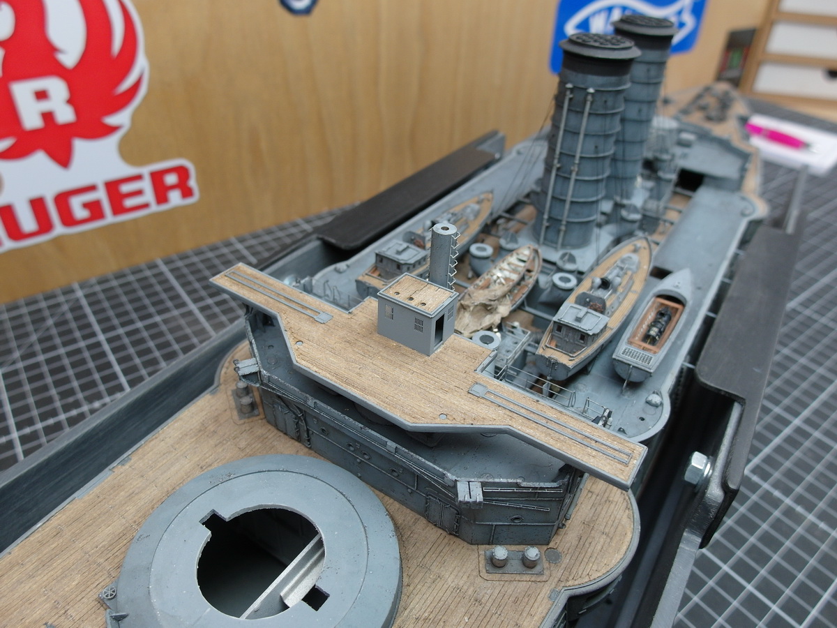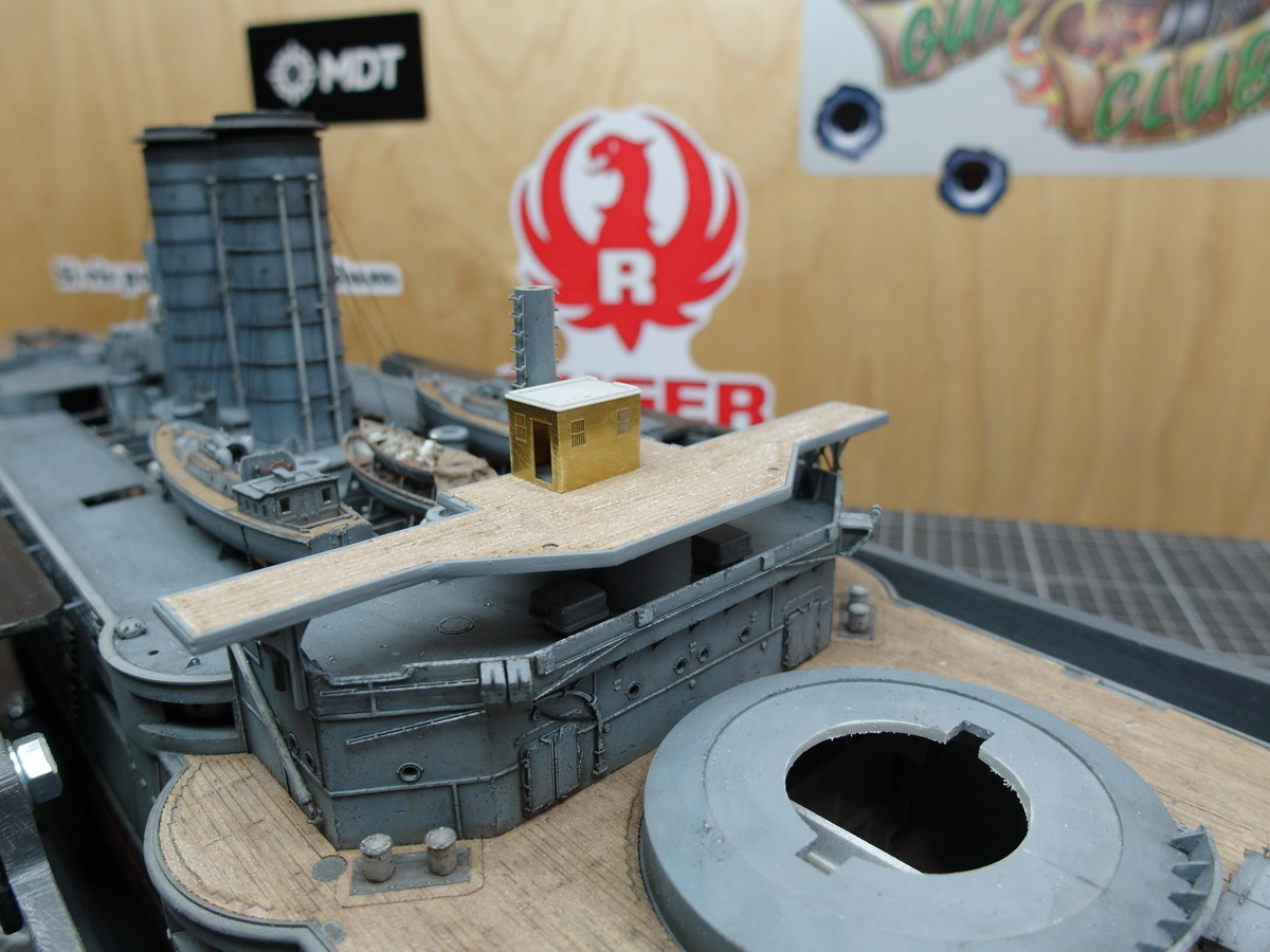 I’ve already soldered the little bridge house and placed it on the deck for fun.