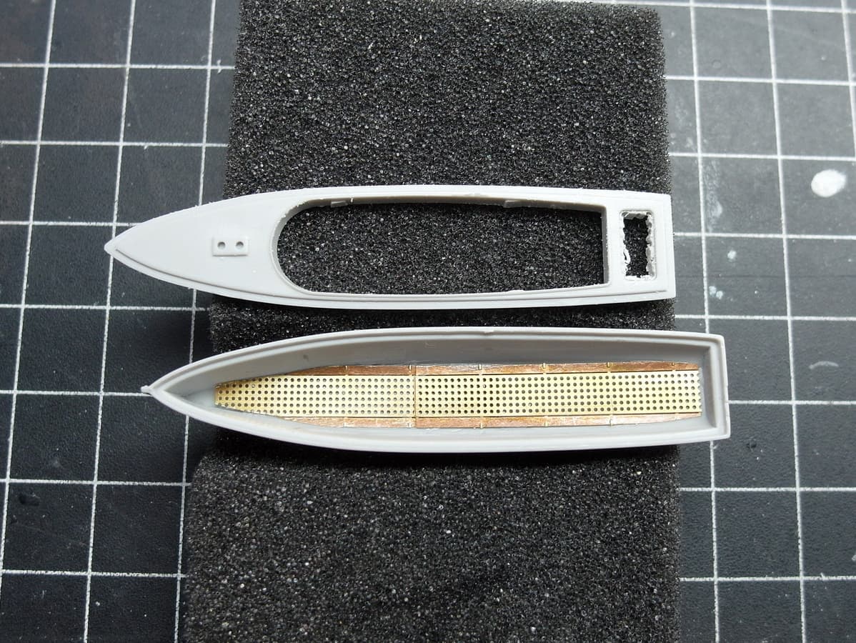 Originally made from the box, the boat really doesn’t look anything like it. First, I removed the rough outline of the engine and the bulky center bar of the upper section.