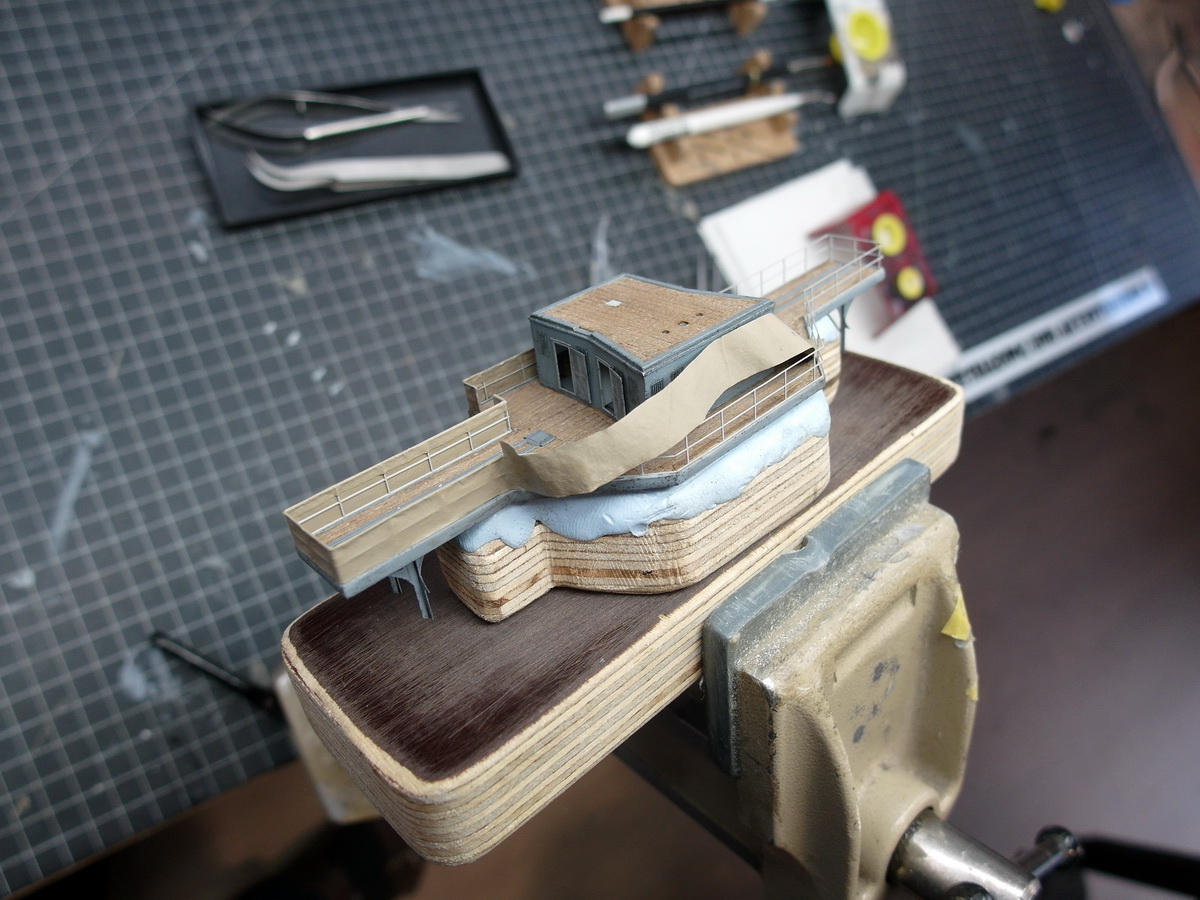Unfortunately, I only thought of it after I’d finished the railing on the rear bridge. And that would have been the perfect spot for this little section of groyne. It has the most space to properly detail it.
