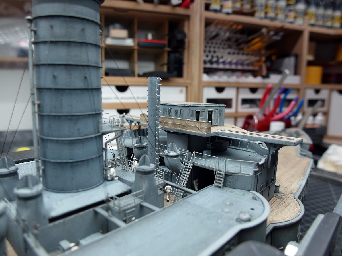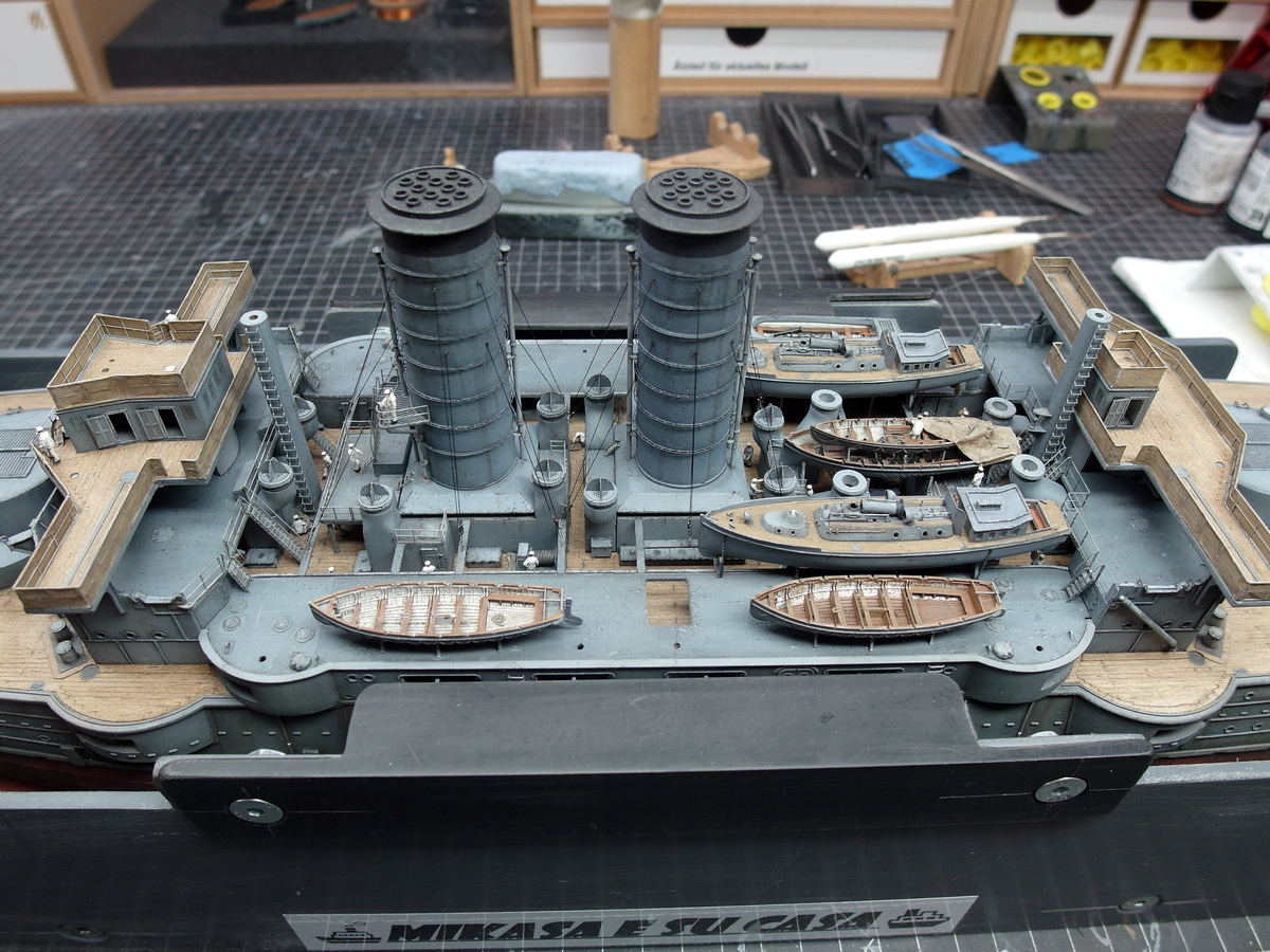 Since the bridge is roughly finished, I wanted to continue working amidships before attaching it to the Mikasa.