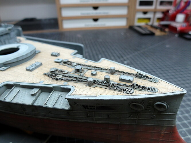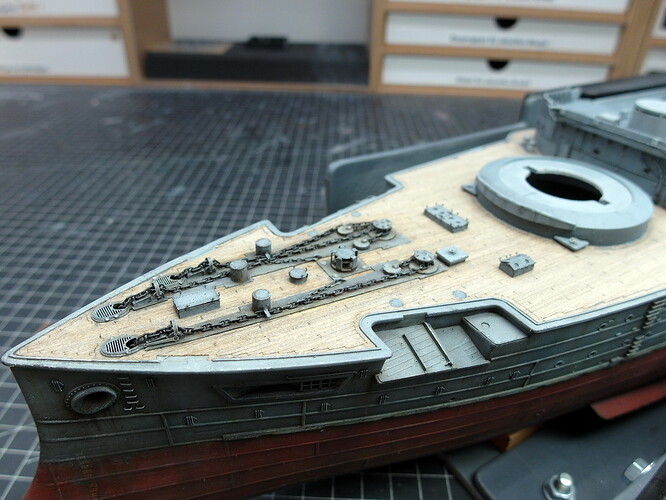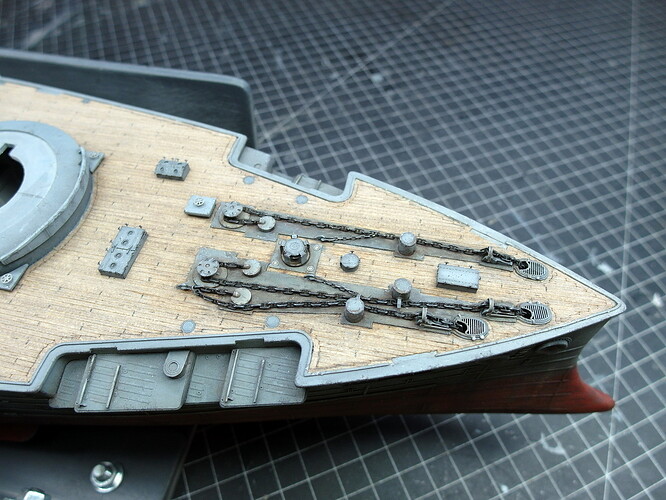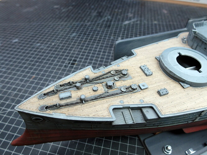 Now I can start with the anchor area at the bow and have cut everything I need out of the boards.