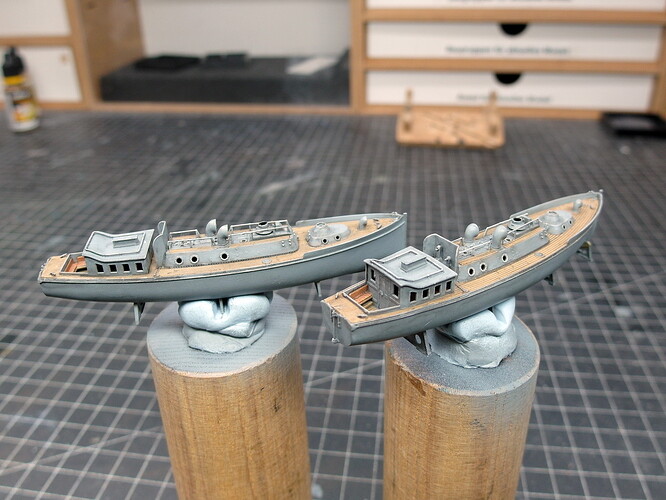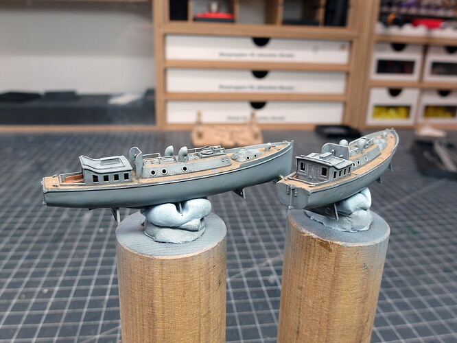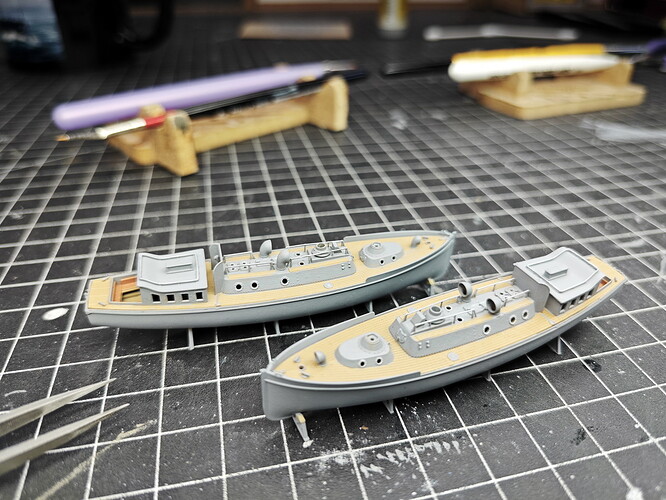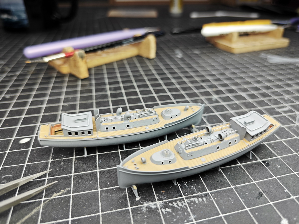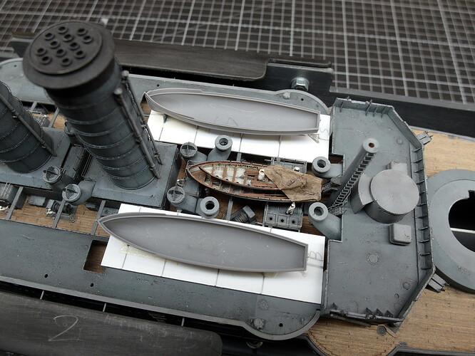 What I am already doing is attaching the corresponding davits. I have identified them in the following pictures. Rear bridgehouse…