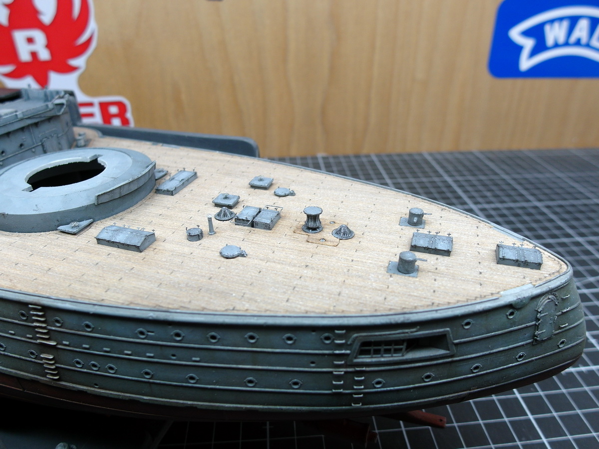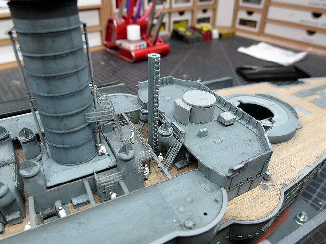 Scale thickness of the forward conning tower armour should be just shy of 1.8mm. For the rear conning tower it’s only 0.5mm.