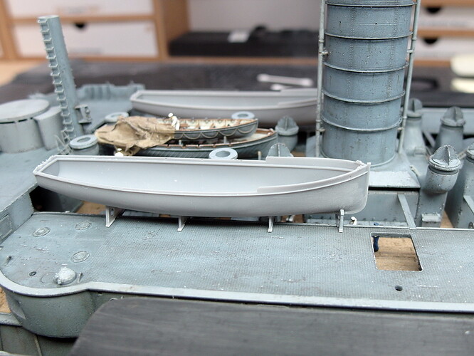 And so the first pinnace could be placed in its cradles and placed on the deck for testing. You can see a faulty print in the hull. This has already been claimed, and I’m getting a new one.